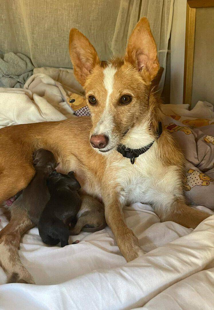 Nach kurzer Zeit hat sich herausgestellt, dass Ginny trächtig ist. Am 30.08.21 haben 3 wunderbare, kleine Welpen das Licht der Welt erblickt und werden von ihrer Mama toll umsorgt.