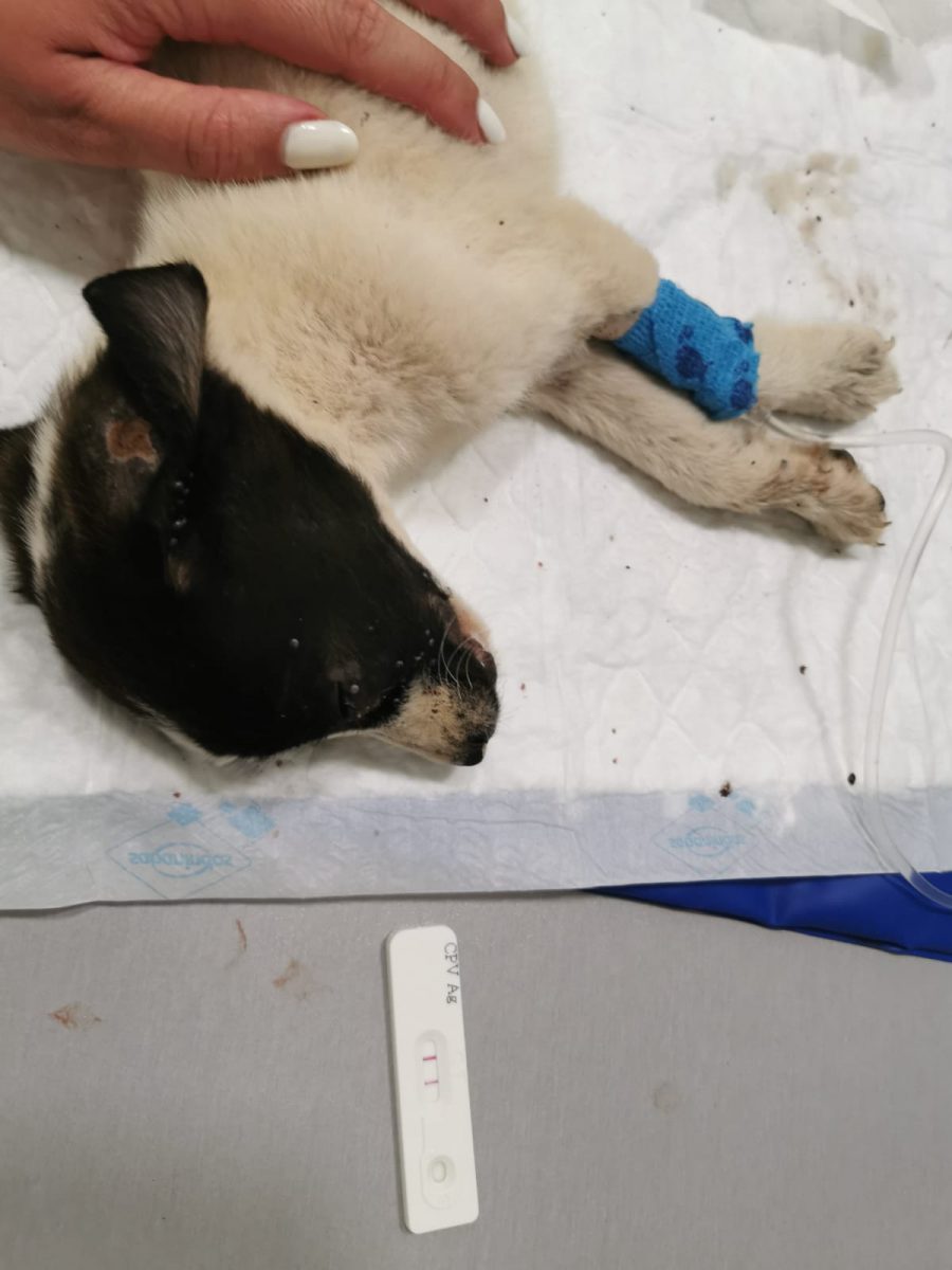 Schließlich war der Parvo-Virus unter Kontrolle, unsere kleine Maus fraß, übergab sich nicht und hatte keinen Durchfall. Trotzdem war sie immer noch sehr schwach und ihre Augen waren halb geschlossen. Ein weiterer Bluttest zeigte, dass alle Werte zwar gut, sie aber weiterhin sehr anämisch war. Und immer noch fielen zig Zecken von diesem kleinen Körper ab. Sie erhielt täglich  Plasmatransfusionen und Supra Tabletten, denn für eine weitere Bluttransfusion war es noch zu früh.