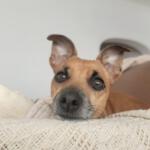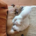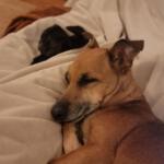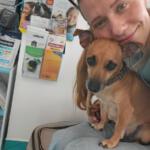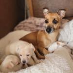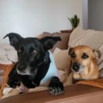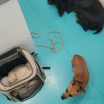 Kurz vor Weihnachten erreichte uns ein weiterer Notruf. Mama Jingle wurde mit ihren zwei frisch geborenen Welpen einfach in einer Tüte ausgesetzt. Scheinbar wurde sie mit ihren Welpen in die Aldi-Tüte gepackt und festgebunden, damit sie nicht wegkann und einfach am Straßenrand zurückgelassen. Die arme Seele hat die Welt nicht mehr verstanden, glücklicherweise konnte Elena sie sichern und ihr die Schnüre vom Hals schneiden. Da wir im Shelter erst vor kurzem mit dem Parvo-Virus zu kämpfen hatten, ist die kleine Familie erstmal bei Elena eingezogen.