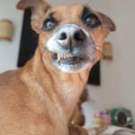 Jingle ist aufgrund ihrer traumatischen Erfahrung erstmal sehr skeptisch gegenüber Menschen. Sie beschützt ihre kleinen Welpen wie eine echte Löwenmama. Stück für Stück scheint sie aber wieder vertrauen aufzubauen. Da sie gerade erst bei uns eingezogen ist, können wir noch nicht viel mehr sagen.