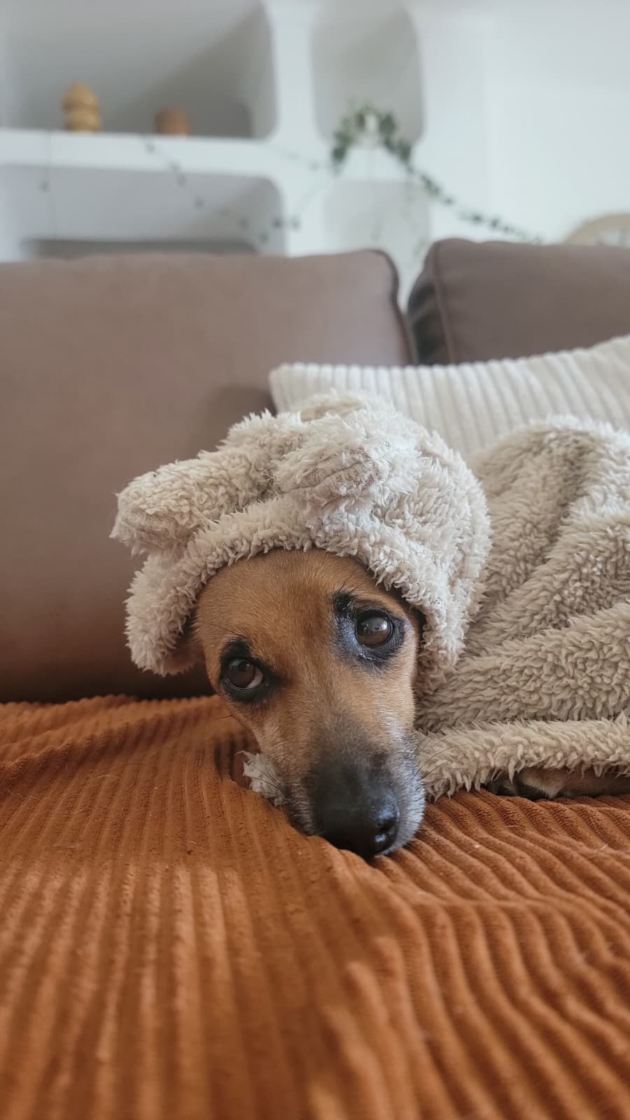 Jingle ist aufgrund ihrer traumatischen Erfahrung erstmal sehr skeptisch gegenüber Menschen. Sie beschützt ihre kleinen Welpen wie eine echte Löwenmama. Stück für Stück scheint sie aber wieder vertrauen aufzubauen. Da sie gerade erst bei uns eingezogen ist, können wir noch nicht viel mehr sagen.