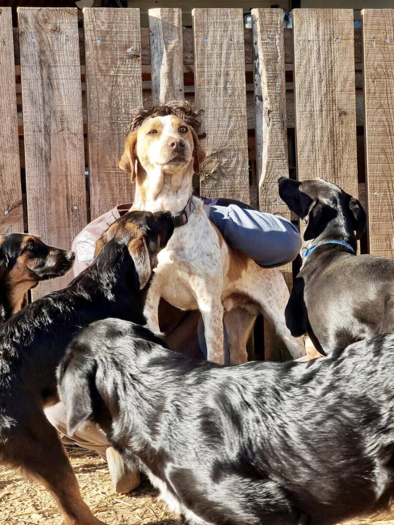 Kiev ist schon nach kurzer Zeit gut bei uns angekommen. Er ist ein fröhlicher Hund, der sehr menschenbezogen und für jede Aufmerksamkeit dankbar ist. Den Jagdhund in ihm merkt man an der Leine allerdings deutlich. Kiev braucht daher Jemanden, der viel mit ihm trainiert und das Gassi gehen übt. Er versteht sich gut mit den anderen Hunden im Rudel, nur bei bestimmten Rüden ist es mitunter etwas schwierig.