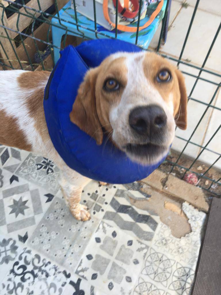 Kiev wurde von einer befreundeten Tierschützerin befreit, da er sehr vernachlässigt an der Kette am Haus eines älteren Herrn lebte. Er war voll von Flöhen und Fliegen und hat verschiedene offene Wunden am Kopf und den Ohren. Er wurde sofort bei unseren Tierärzt:innen untersucht und seine Bluttests ergaben, dass er positiv für Leishmaniose und Zeckenbissfieber ist. Er wird jetzt bei uns behandelt und kann endlich die schönen Seiten des Lebens kennenlernen.