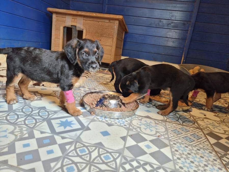Lenny wurde mit seinen 4 Geschwistern in einem Karton im Müll gefunden. Zunächst waren alle Welpen fit und genossen ihr neues Leben. Dann wurde zu unserem Entsetzen eines morgens Faro tot aufgefunden, ohne dass es Anzeichen einer Krankheit gegeben hatte. Daraufhin haben wir alle Welpen gründlich untersuchen lassen. An den darauffolgenden Tagen zeigten sich leider deutliche Symptome bei den anderen Welpen. Die Bluttests ergaben, dass die Kleinen am Parvovirus erkrankt waren, der für Welpen oft tödlich ist. Lenny musste einige Tage in der Tierklinik behandelt werden. Zum Glück konnten wir das Leben aller weiteren Welpen retten.
