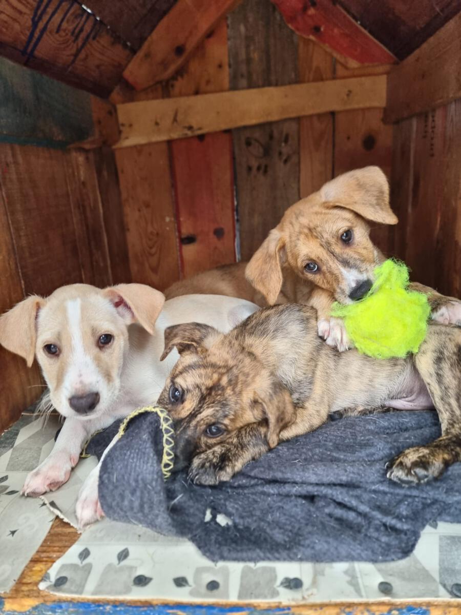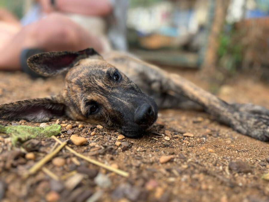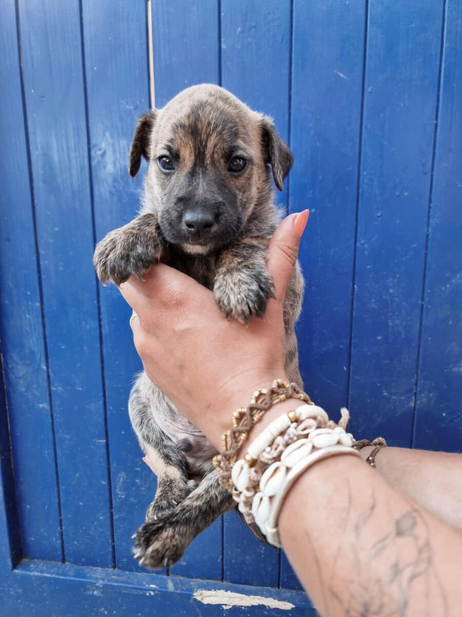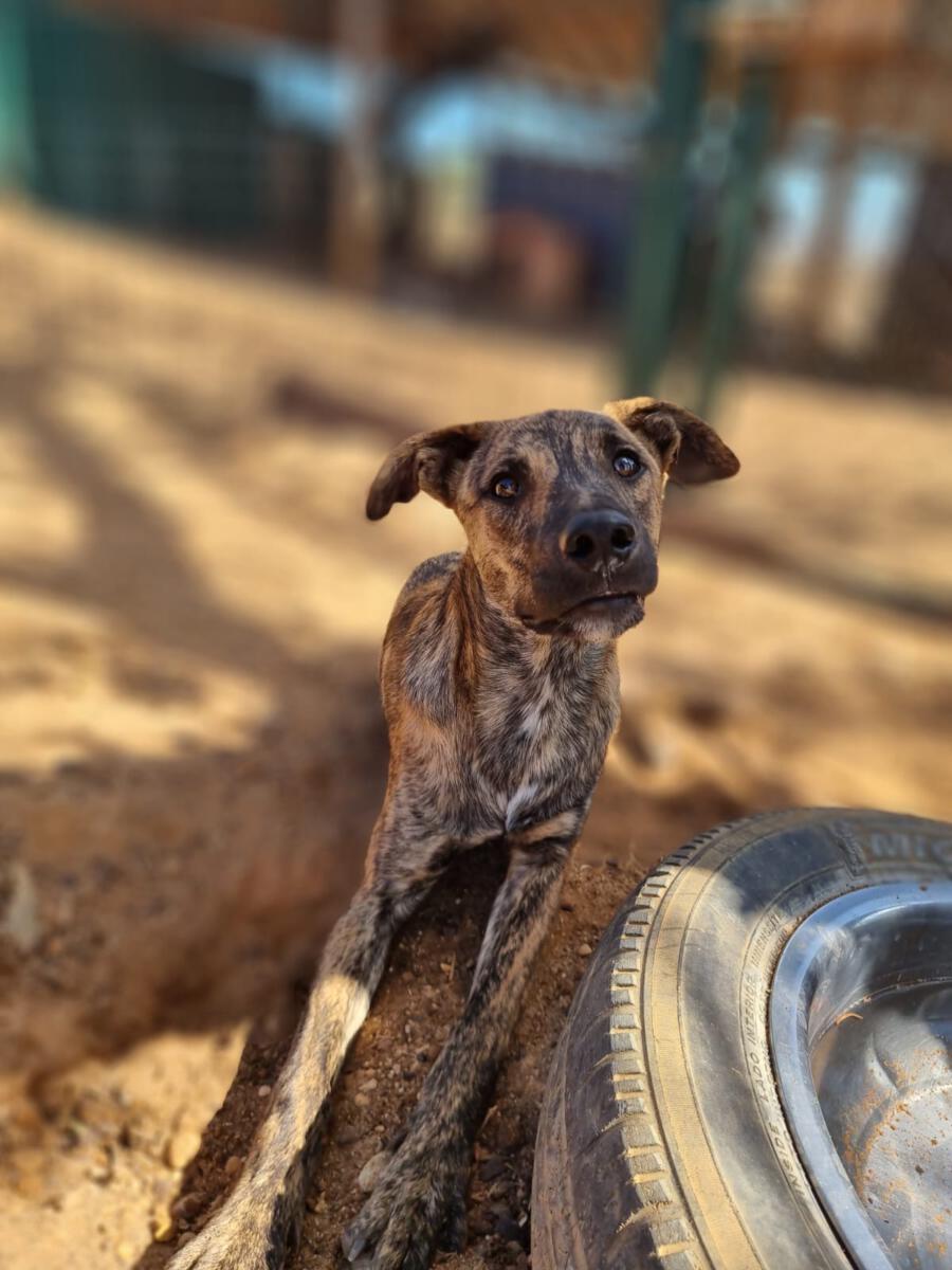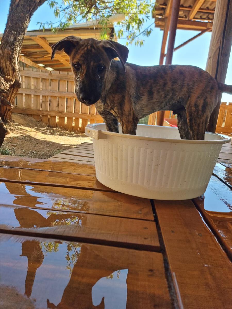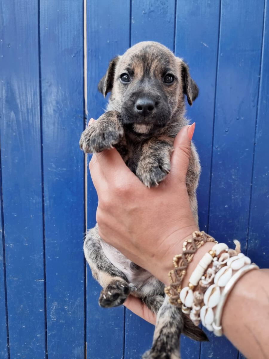 In der Nähe einer Orangenplantage haben Anwohner die Hundemama Tokyo mit ihren 7 Welpen entdeckt, die sich dort verkrochen hatten. Einer dieser Welpen war León. Durch ihren Hilfeaufruf sind wir auf die kleine Familie aufmerksam geworden, und unsere Helfer haben sich auf den Weg gemacht, die Truppe einzusammeln. Da Tokyo noch sehr ängstlich und scheu war, machte sie es unseren Helfern nicht so einfach sich einfangen zu lassen. Mit ganz viel Geduld ist sie jedoch nach einigen Stunden in die aufgestellte Hundefalle hereingegangen und so konnten wir glücklicherweise direkt die gesamte Hundefamilie in das PLACE for STRAYS bringen. Nun kann die kleine Familie sich erst einmal erholen und sich in unserer roten Kreuz Station einleben.