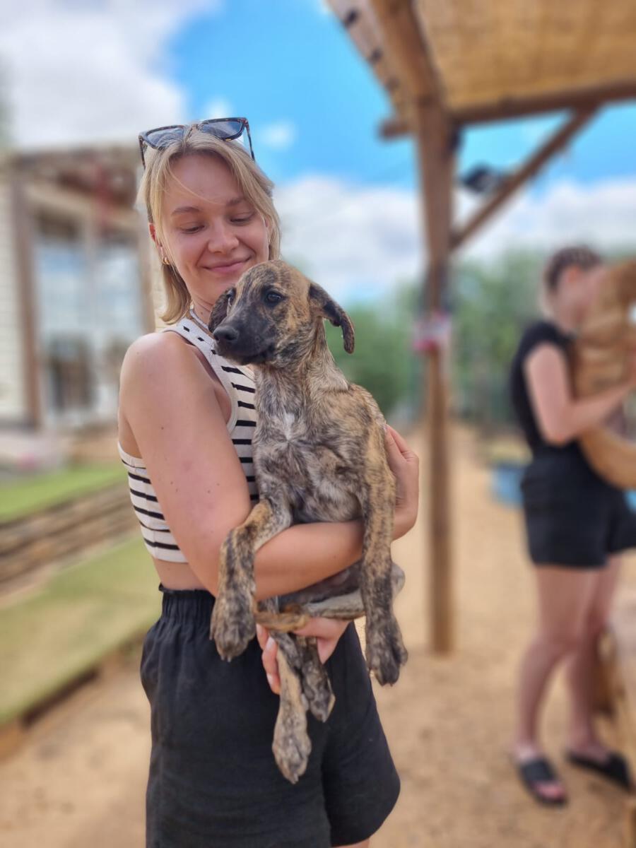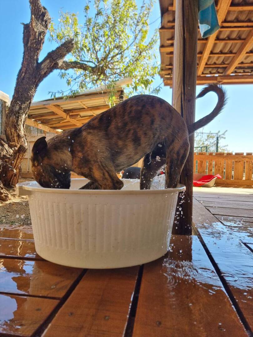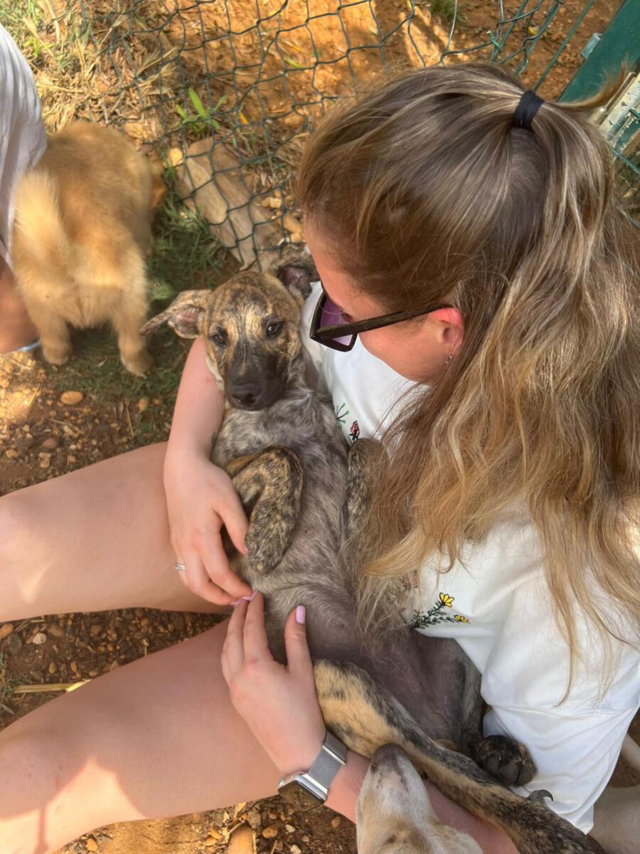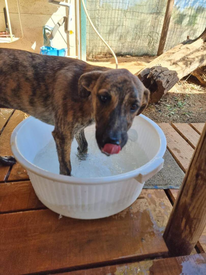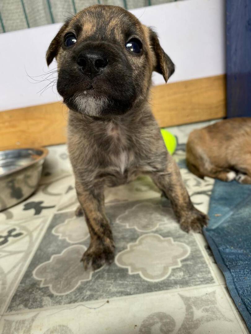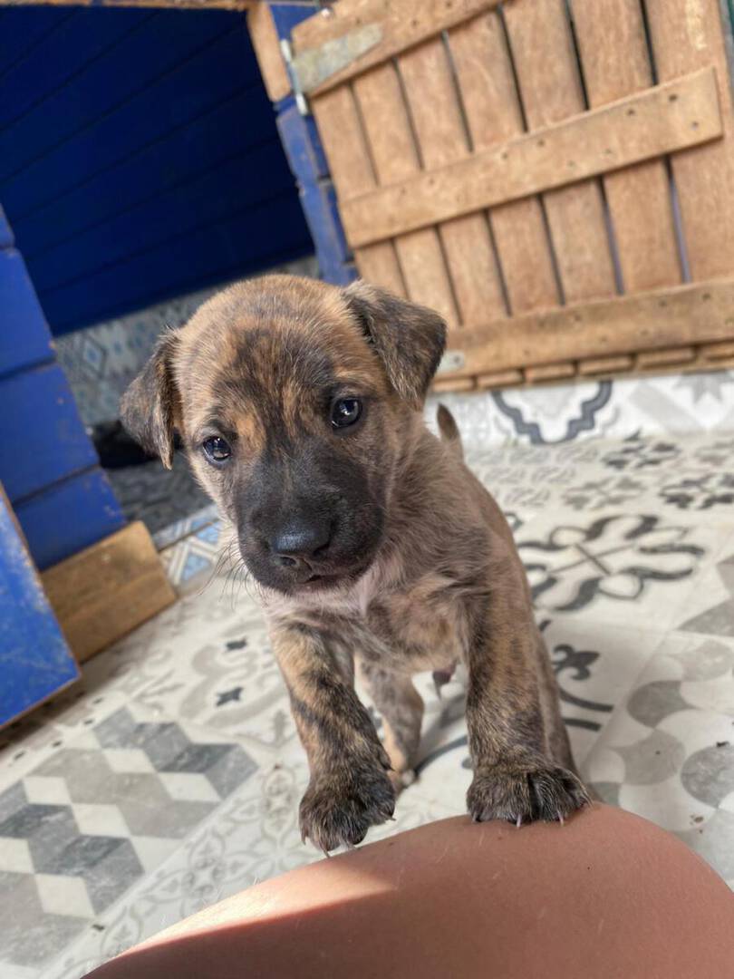 In der Nähe einer Orangenplantage haben Anwohner die Hundemama Tokyo mit ihren 7 Welpen entdeckt, die sich dort verkrochen hatten. Einer dieser Welpen war León. Durch ihren Hilfeaufruf sind wir auf die kleine Familie aufmerksam geworden, und unsere Helfer haben sich auf den Weg gemacht, die Truppe einzusammeln. Da Tokyo noch sehr ängstlich und scheu war, machte sie es unseren Helfern nicht so einfach sich einfangen zu lassen. Mit ganz viel Geduld ist sie jedoch nach einigen Stunden in die aufgestellte Hundefalle hereingegangen und so konnten wir glücklicherweise direkt die gesamte Hundefamilie in das PLACE for STRAYS bringen. Nun kann die kleine Familie sich erst einmal erholen und sich in unserer roten Kreuz Station einleben.