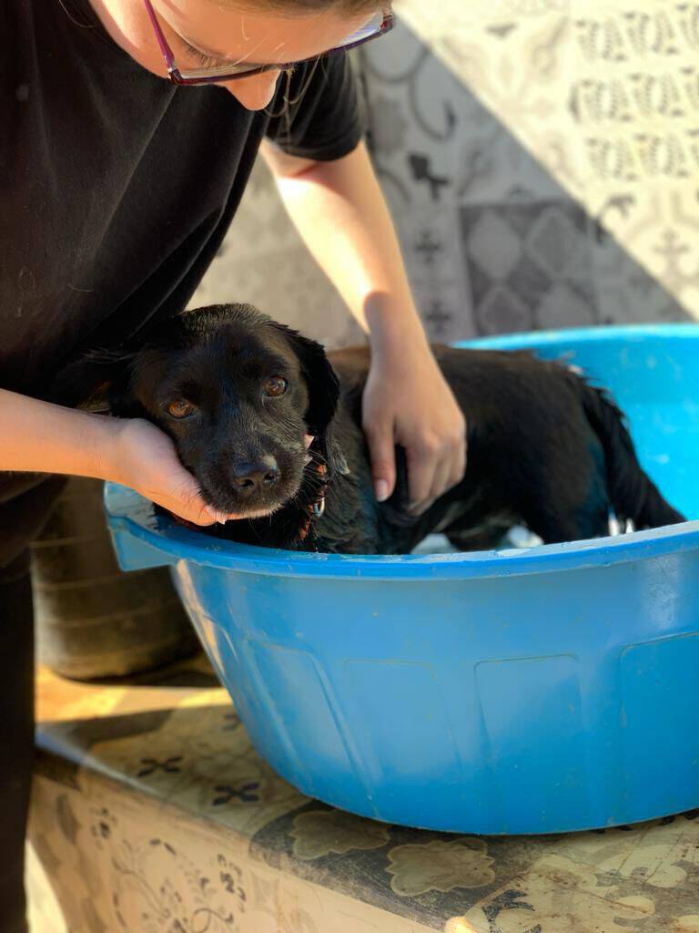 Wie jede unserer Fellnasen musste auch Lika zur Erstuntersuchung zum Tierarzt. Die Ergebnisse der Blutuntersuchungen ergaben, dass sie glücklicherweise weder an Zeckenbissfieber, Herzwürmern, noch an Leishmaniose leidet. Allerdings hat sie, vermutlich altersbedingt, eine Herzunregelmäßigkeit, die aktuell mit einer Tablette (Banacep) täglich behandelt wird. Außerdem gehen wir regelmäßig außerhalb unseres Geländes spazieren, damit Lika ein bisschen an Gewicht verliert, denn unsere kleine Lady hat definitiv ein paar Pfunde zu viel auf den Rippen.