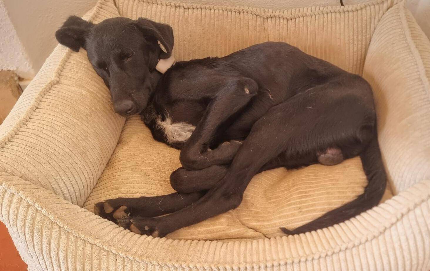 Eine befreundete Tierschützerin entdeckte leider wieder einmal zwei arme Fellnasen in einem Lager. Der arme Maddox hing an einem Strick und war in einem schlechten gesundheitlichen Zustand. Im PLACE for STRAYS bekam er die medizinische Versorgung die er brauchte und wurde aufgepäppelt. Anfang Dezember 2024 zog er auf seine Pflegstelle nach Obertshausen, Nähe Frankfurt.