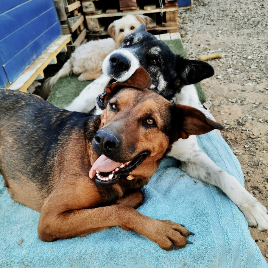 Diese wunderschöne Fellnase ist eine richtige Kuschelkönigin. Besonders für ihre innigen Umarmungen ist Manuka bei allen bekannt. Am liebsten würde sie die ganze Zeit mit ihrem Menschen (aktuell fällt unserer lieben Elena diese Rolle zu) verbringen. Sie ist absolut aufgeschlossen und freundlich. Und nicht nur mit Menschen ist sie super – auch bei den Hunden kommt sie mit allen ganz prima zurecht! Ganz besonders unser lieber Rolf hatte es ihr angetan. Da lag fast eine kleine Liebesgeschichte in der Luft.