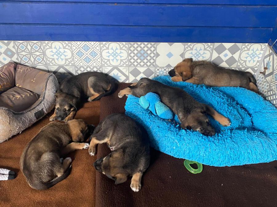 Wieder wurden 7 kleine Welpen unter einer Mülltonne gefunden und von unserem Teammitglied Hany eingesammelt. Auch wenn unsere Volunteers eigentlich kaum Kapazitäten für die kleinen Fellnasen hatten, konnten die Welpen nicht einfach zurückgelassen werden. So haben unsere Volunteers Hany, Elena und Dianne die Welpen unter sich aufgeteilt und zogen die Kleinen mit der Flasche groß. Glücklicherweise waren die Welpen schon einige Wochen alt und öffneten gerade ihre Augen. Das Fläschchen brauchten sie trotzdem alle paar Stunden.