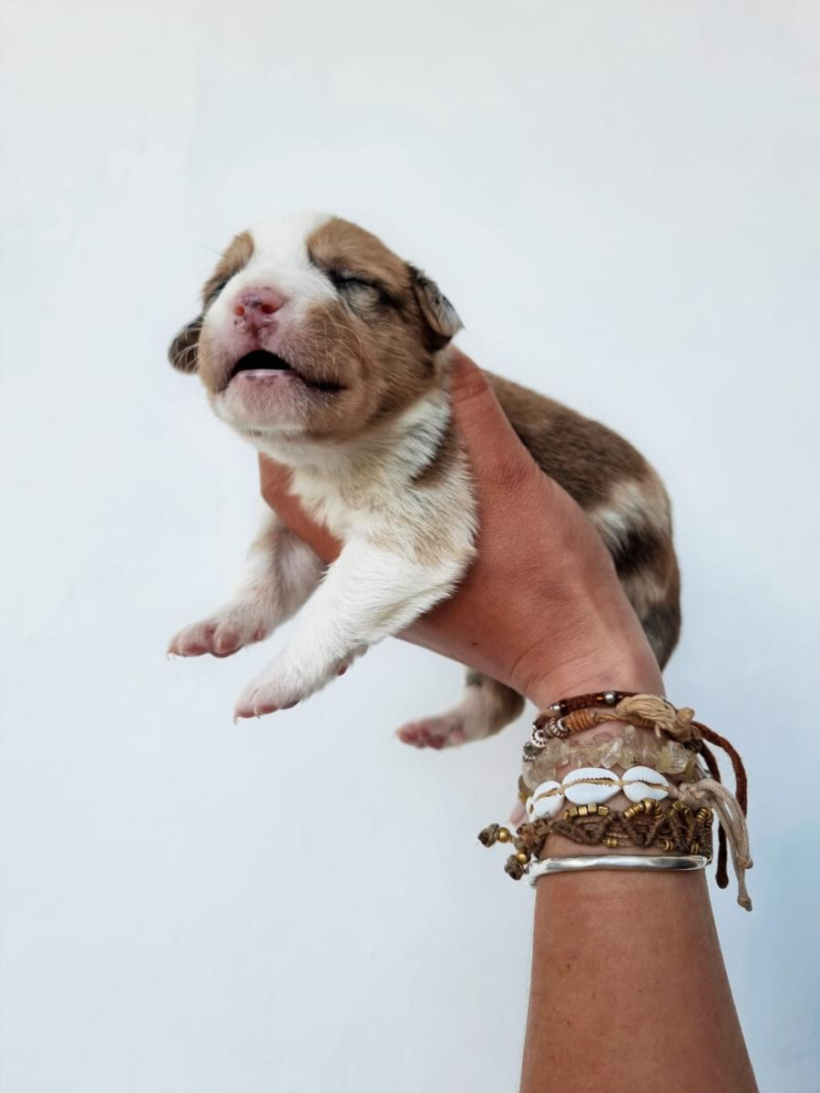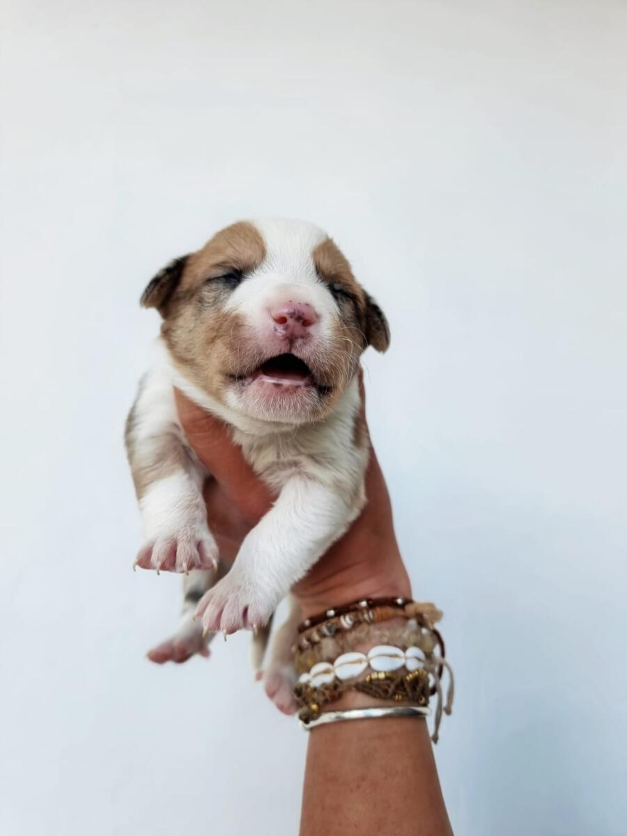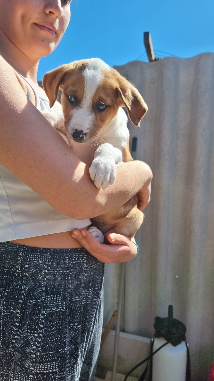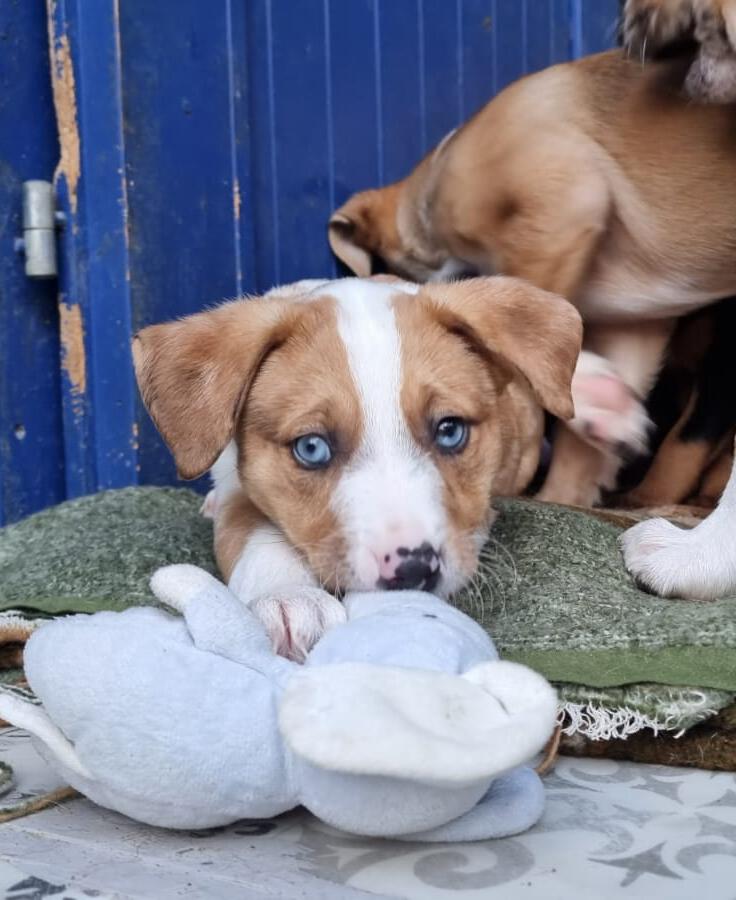Mit einem restlichen Stück Schnur um den Hals und zahlreichen Wunden wurde die Hündin Priya von einem Mann auf seinem neu gekauften Grundstück zurückgelassen aufgefunden. Leider konnte er sie wegen seines eigenen Hundes nicht behalten und brachte sie deshalb zu Algarvet. Nachdem sie dort ihre ersten Untersuchungen sowie Behandlung ihrer Wunden erhielt, durfte sie ins PLACE for STRAYS einziehen – und das nicht alleine: Der erste Check-Up bei unserem Tierarzt bestätigte dass die Hundedame hochträchtig war! Wir sind sehr froh, dass sie rechtzeitig gefunden wurde und ihre Welpen nicht auf der Straße zur Welt bringen musste, denn diese ließen nicht lang auf sich warten. Kaum im PLACE for STRAYS angekommen brachte die tapfere Mama 9 Welpen zur Welt, von denen es leider nur 7 schafften, eine davon war die süße Milka.