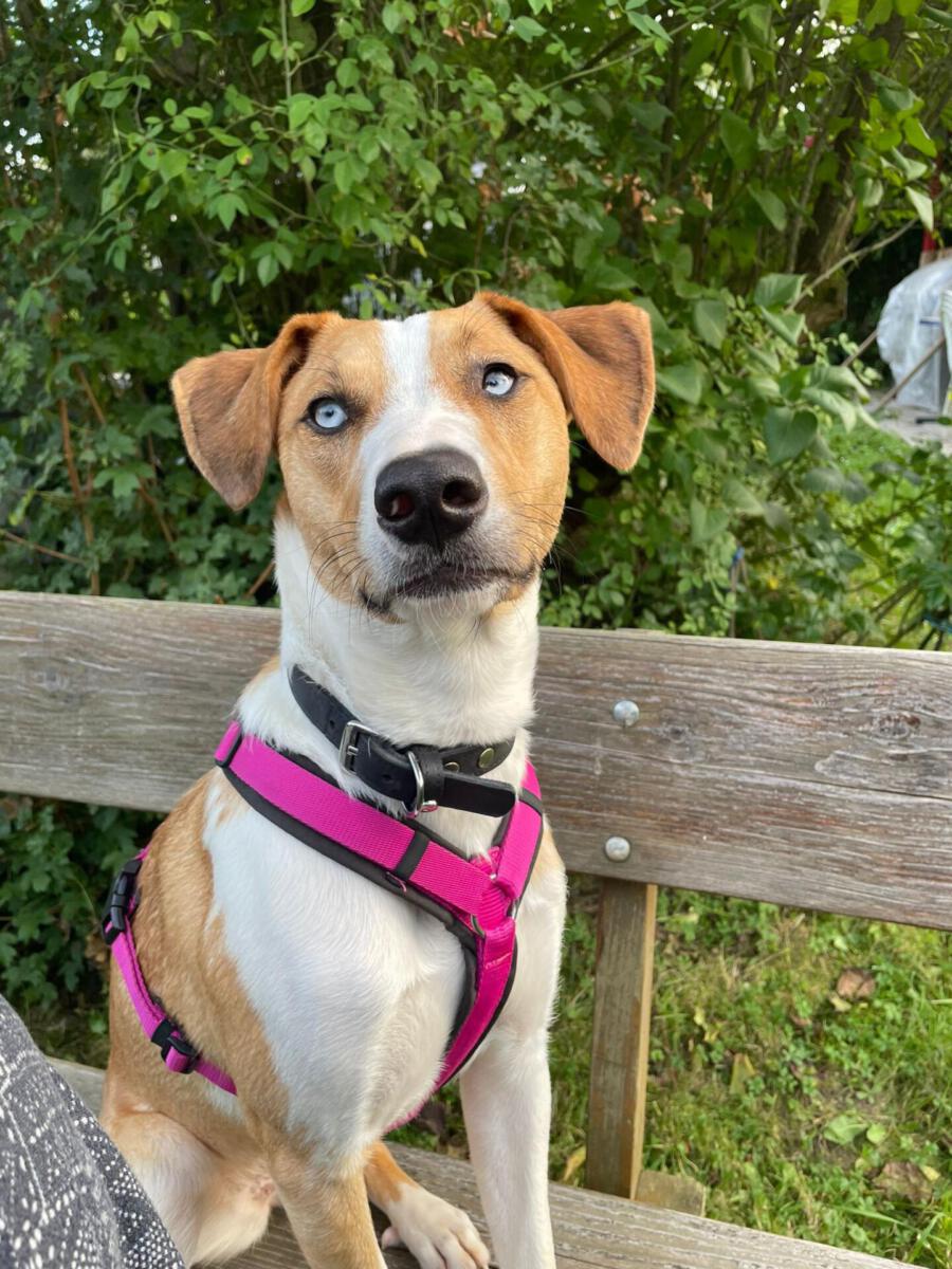 Milka ist zu einer echten Junghündin herangewachsen. Junghundtypisch ist sie noch sehr verspielt und ungestüm und muss das grundlegende Hunde-Einmaleins noch lernen. Da Milka inzwischen in Deutschland in einer Pflegestelle in der Nähe von Frankfurt ist, kann sie gerne besucht werden. Sie macht auf ihrer Pflegestelle große Fortschritte. Etwa das in der Box bleiben oder auch Bahnfahren kann sie schon prima. Auch an der Leine läuft sie gut und findet immer besser zur Ruhe. Natürlich braucht sie weiterhin viel konsequente Erziehung, damit sich das Gelernte festigt. Zu Fragen, wendet euch bitte an das Vermittlungsteam.