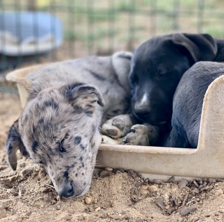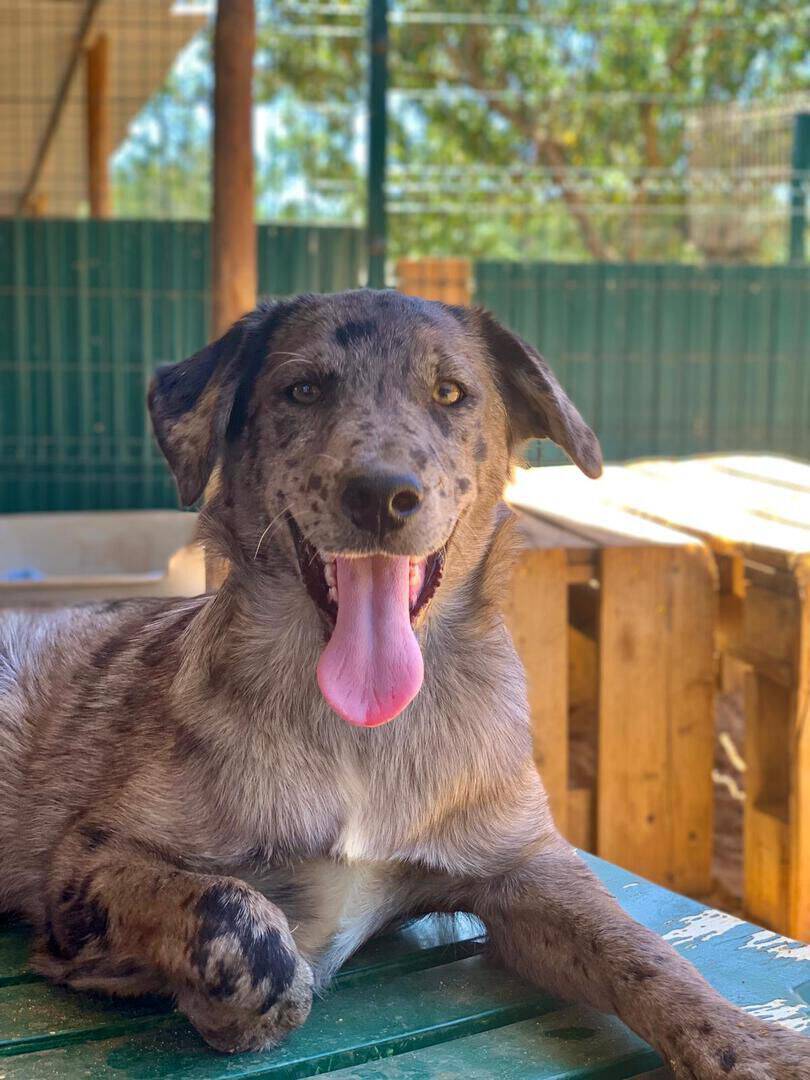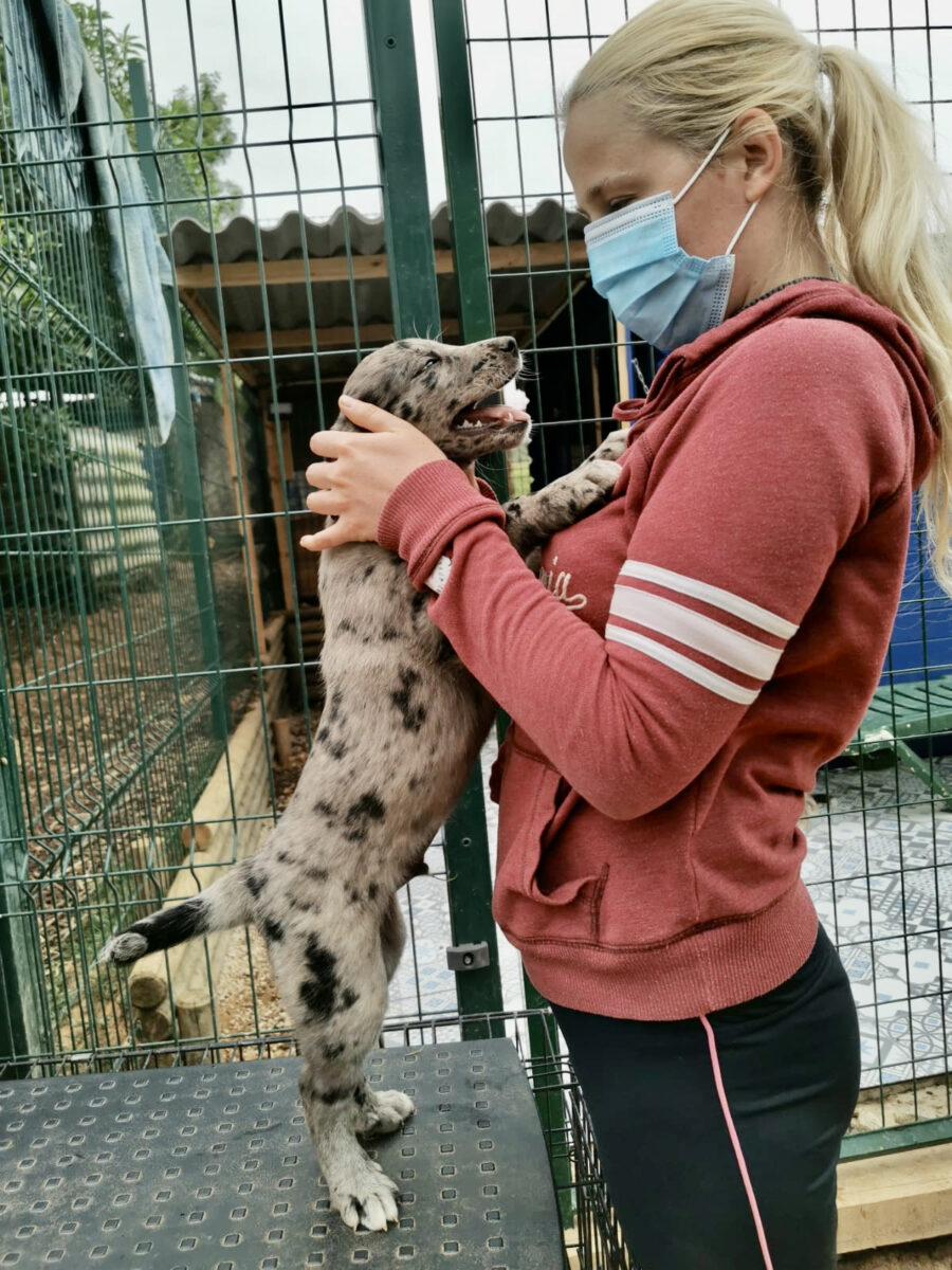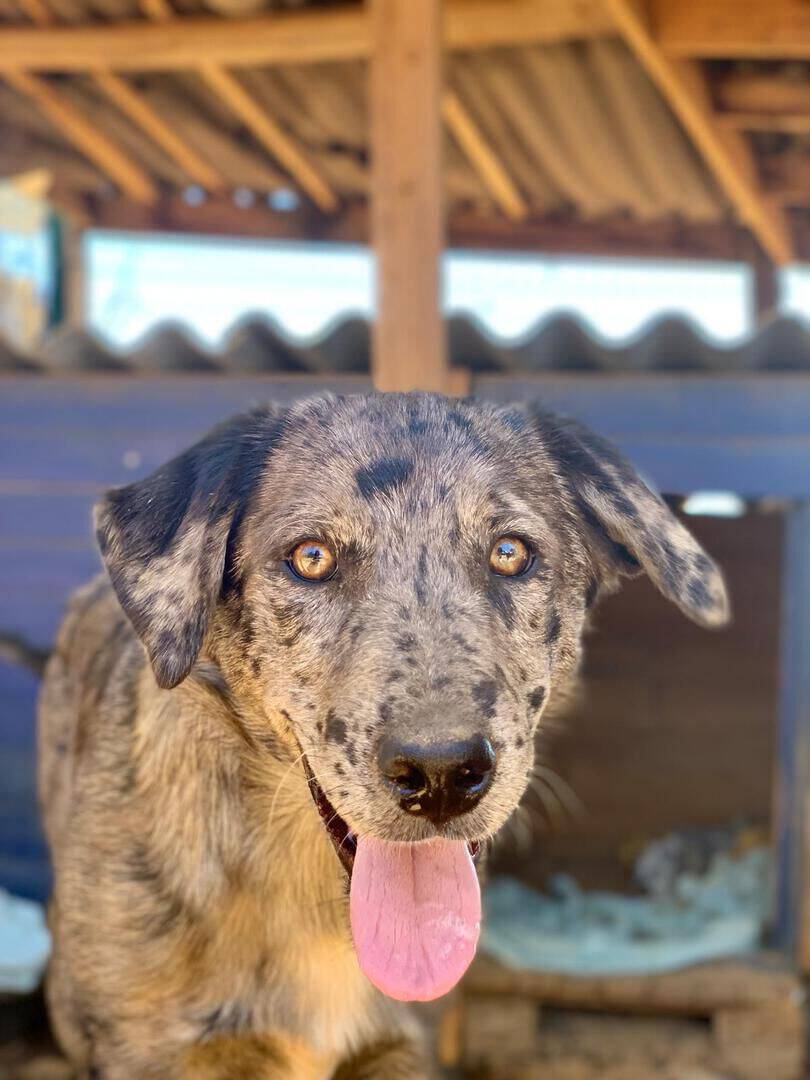 Die Hündin Shenzi lebte zusammen mit ihrer Mutter Amora und ihrer Schwester Gala auf der Straße bzw. in der Nähe von Häusern. Liebe Anwohner fütterten sie, konnten sie aber nicht im Haus aufnehmen. Sie suchten lange nach Hilfe und fanden keine. Durch einen glücklichen Zufall kamen sie mit unserer Helferin Claudia in Kontakt und so nahmen wir die drei Hündinnen bei uns auf. Leider sind wir zu spät gekommen, denn Shenzi und ihre Schwester waren trächtig. Am 17.02.2021 brachte Shenzi 8 gesunde Welpen zur Welt. Einer davon ist Mogli.