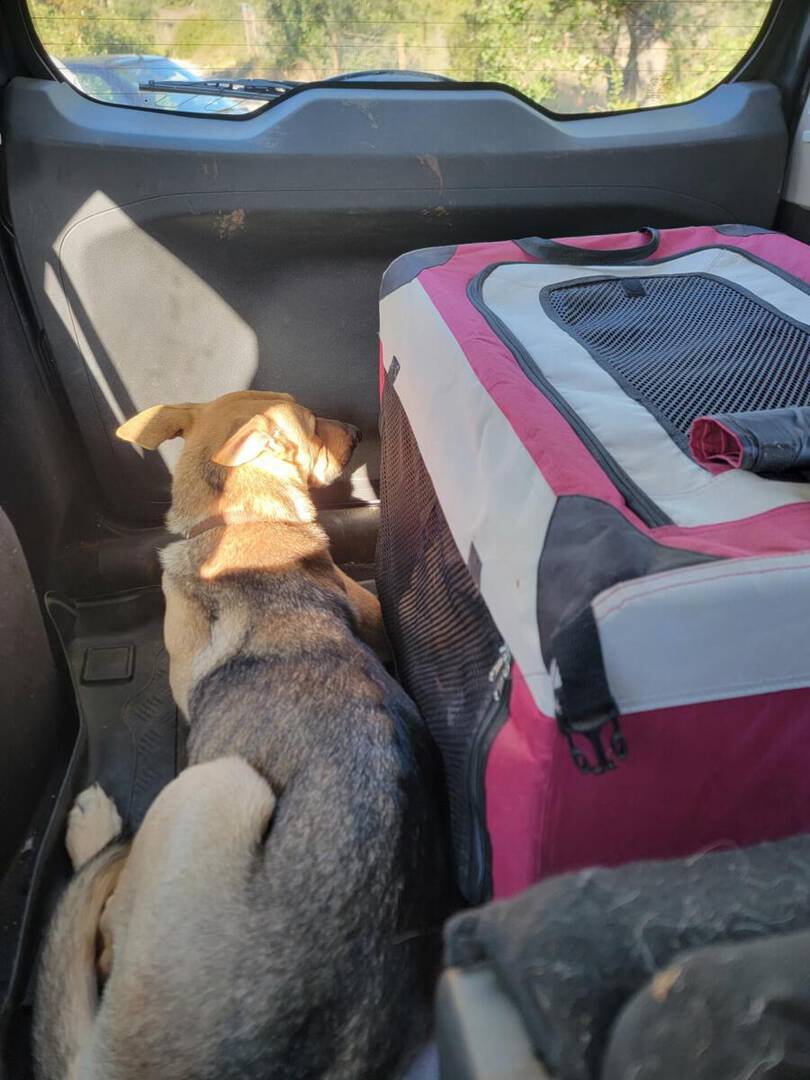 An genau dieselbe Stelle, an der wir einst Hündin Zoey und ihre Welpen retteten, wurden wir nun erneut von Anwohnern gerufen. Sie berichteten, dass vor etwa einem Monat eine Hündin auf dem verlassenen Grundstück aufgetaucht war, die in einer der Ruinen ihre Welpen zur Welt gebracht hatte. Also machte Elena sich auf den Weg, um die junge Familie einzusammeln und in Sicherheit zu bringen. Bei der Rettungsaktion stellte sich schnell heraus, dass die Hündin wohl einst ein Zuhause gehabt haben muss, denn sie ließ sich füttern und berühren. Sie war allerdings nicht gechipt und wurde auch von niemandem vermisst. Wir gehen also davon aus, dass sie auf Grund ihrer Trächtigkeit ausgesetzt wurde.