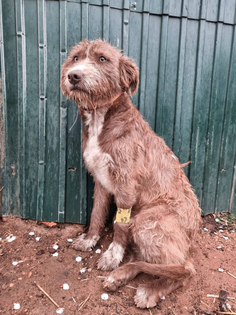 Vor einigen Wochen fiel unserer Helferin Maggie ein Hund auf, der an einer kurzen Kette gehalten wurde. Dieses arme Kerlchen fristete dort sein Dasein ohne Wetterschutz oder eine Decke, ohne Ansprache sowie Aufmerksamkeit und wenn etwas im Napf war, dann alte, gammelige Essensreste seiner Besitzer.