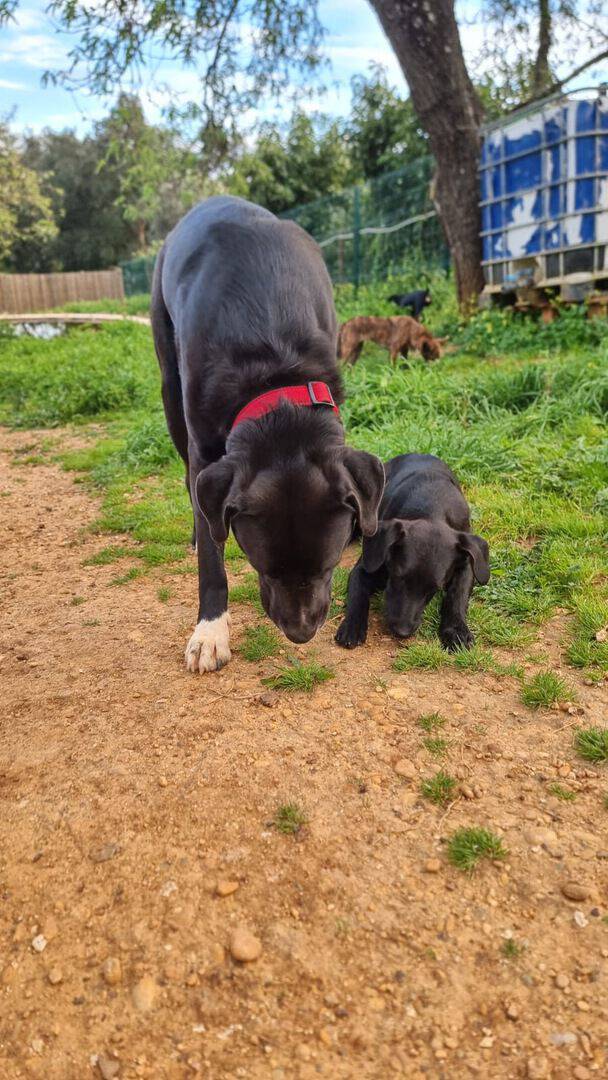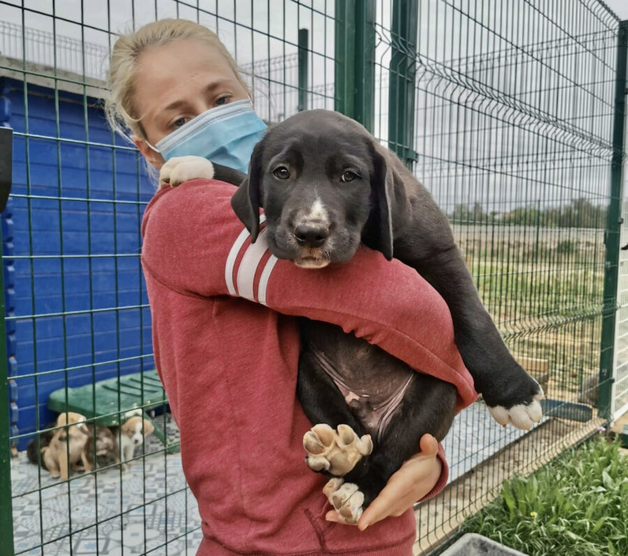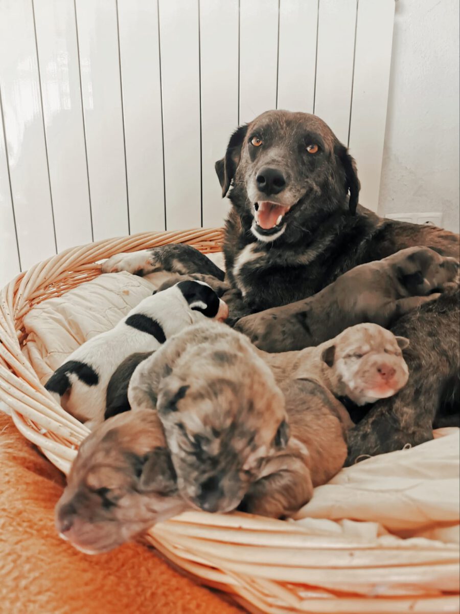 Die Hündin Shenzi lebte zusammen mit ihrer Mutter Amora und ihrer Schwester Gala auf der Straße bzw. in der Nähe von Häusern. Liebe Anwohner fütterten sie, konnten sie aber nicht im Haus aufnehmen. Sie suchten lange nach Hilfe und fanden keine. Durch einen glücklichen Zufall kamen sie mit unserer Helferin Claudia in Kontakt und so nahmen wir die drei Hündinnen bei uns auf. Leider sind wir zu spät gekommen, denn Shenzi und ihre Schwester waren trächtig. Am 17.02.2021 brachte Shenzi 8 gesunde Welpen zur Welt. Einer davon ist Oreo.