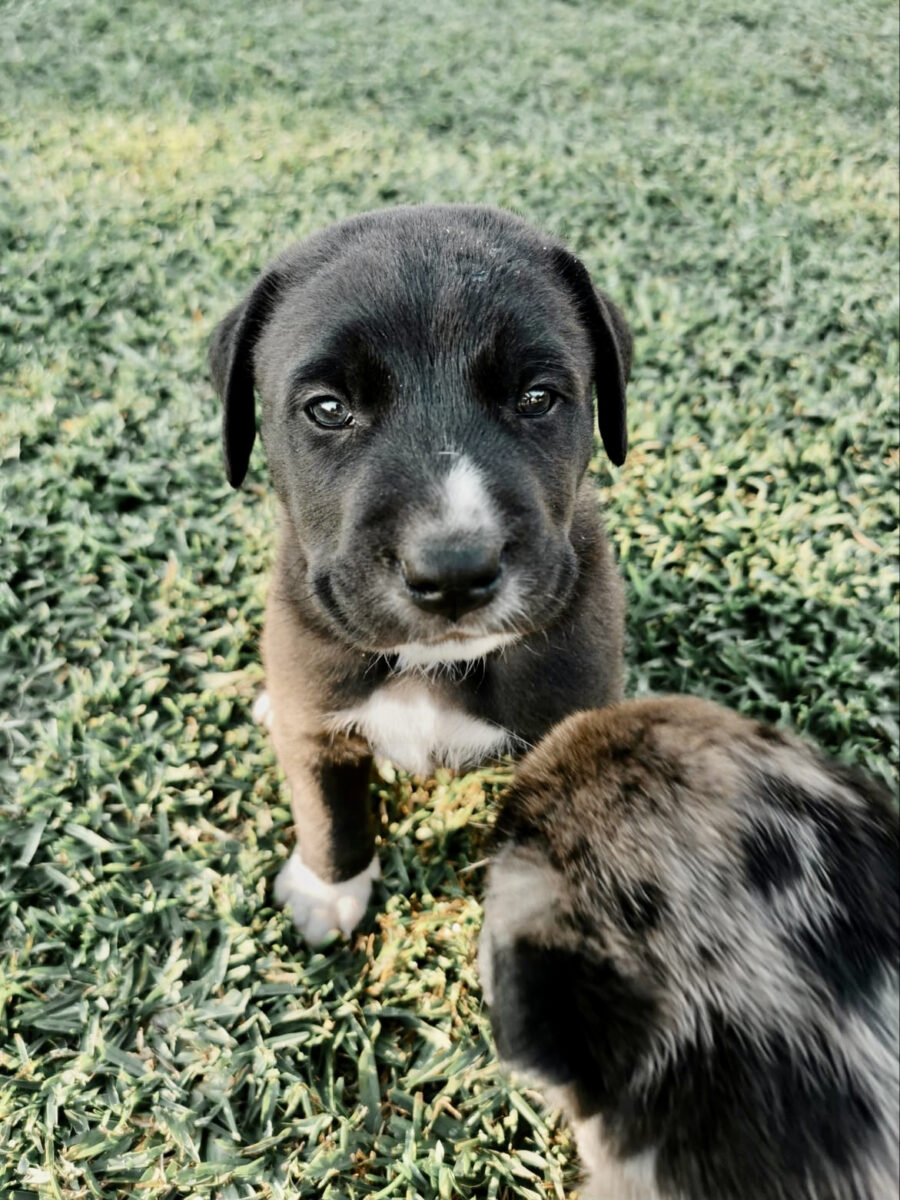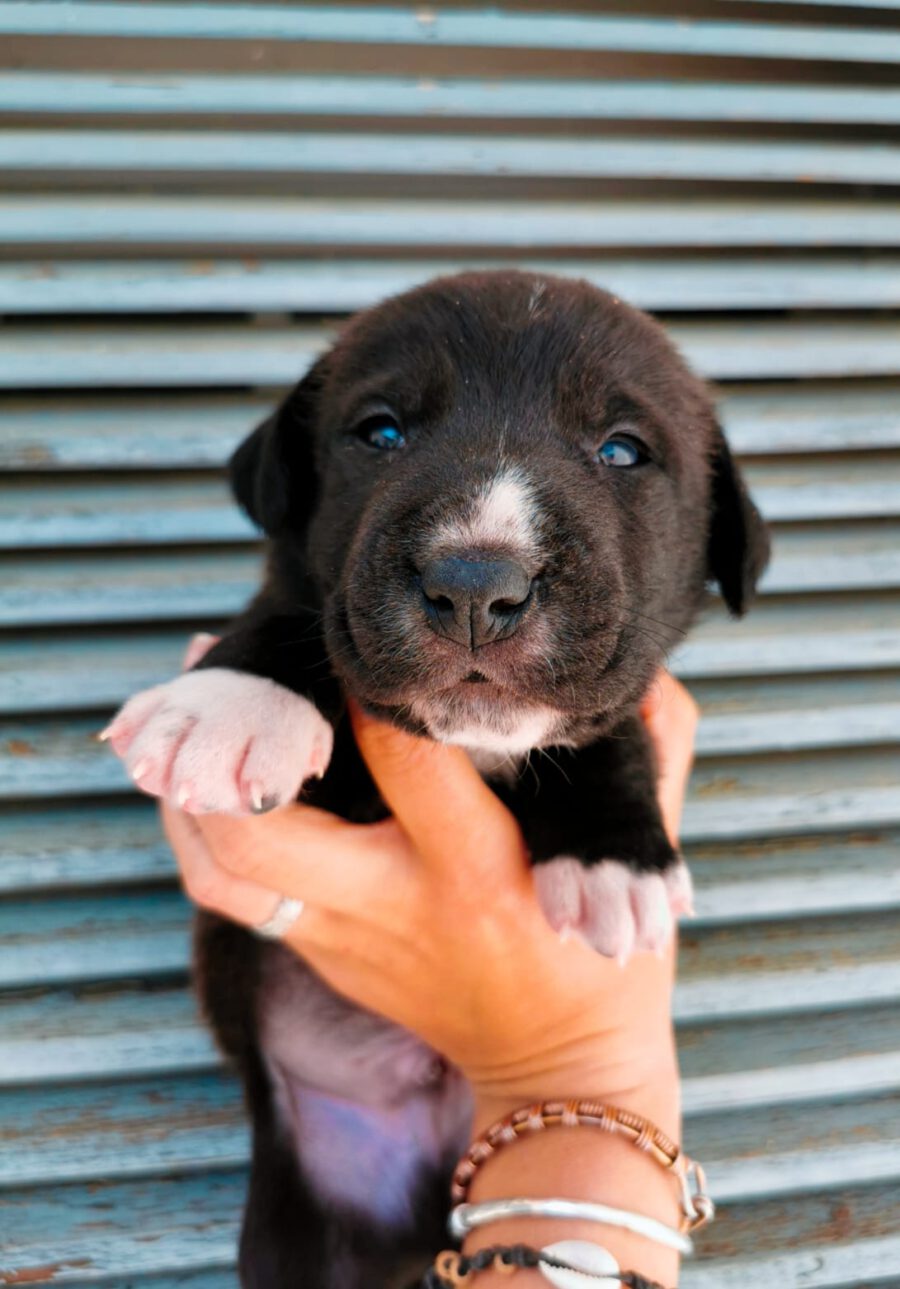 Unser Oreo ist was ganz besonderes. Er hebt sich nicht nur farblich ein bisschen von seinen Geschwistern ab, er hat auch das kürzeste Fell und einen putzigen „Dreiviertel-Schwanz“. Oreo ist ein super cooler Welpe, der schon sehr eigenständig ist. Er kann sich bestens alleine beschäftigen und geht mutig auch mal alleine auf Entdeckungstour. Oreo lässt sich super gerne kuscheln und läuft auch gut an der Leine. Er ist sehr süß und sozial und ist einer der Welpen, der mit Hänsel und Gretel spielen darf, weil er nicht zu wild ist.
