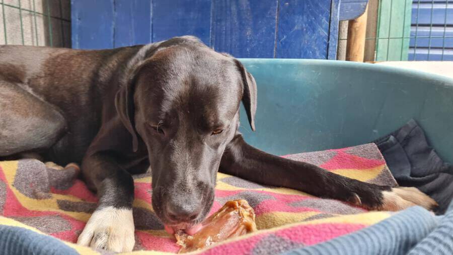 Oreo ist ein sehr großer Kuschelhund, der die Aufmerksamkeit der Helfer*innen genießt. Allerdings merkt man bei ihm deutlich, dass er nie wirklich gelernt hat seine ganze Kraft richtig zu zügeln. Hier fehlt ihm zuteilen auch der Respekt vor Menschen – er wird schnell distanzlos, was aufgrund seiner Größe natürlich nicht sonderlich toll ist.