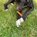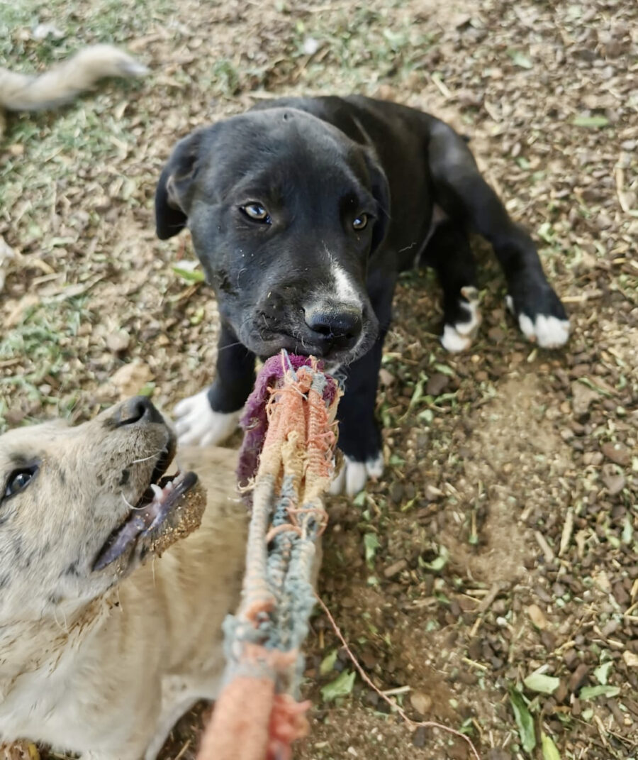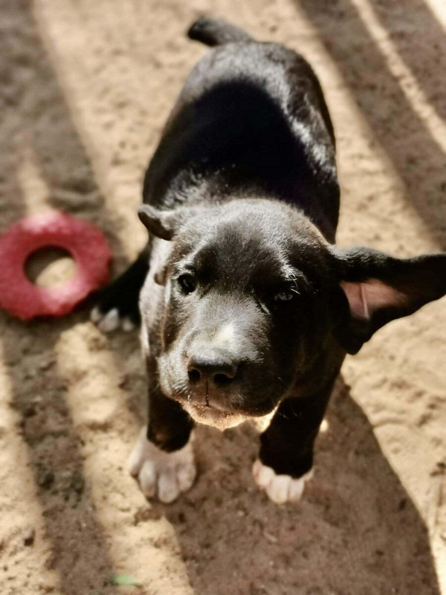 The dog Shenzi lived together with her mother Amora and her sister Gala on the street or near houses. Dear residents fed them, but could not take them in the house. They searched for help for a long time and found none. By a happy coincidence they came into contact with our helper Claudia and so we took the three dogs in with us. Unfortunately we came too late because Shenzi and her sister were pregnant. On February 17th, 2021 Shenzi gave birth to 7 healthy puppies. One of them is Oreo.