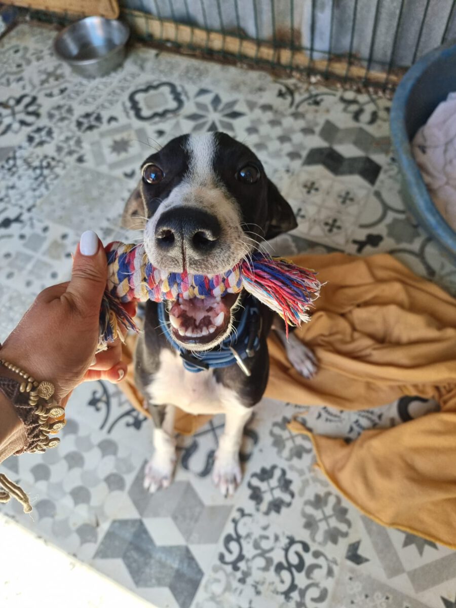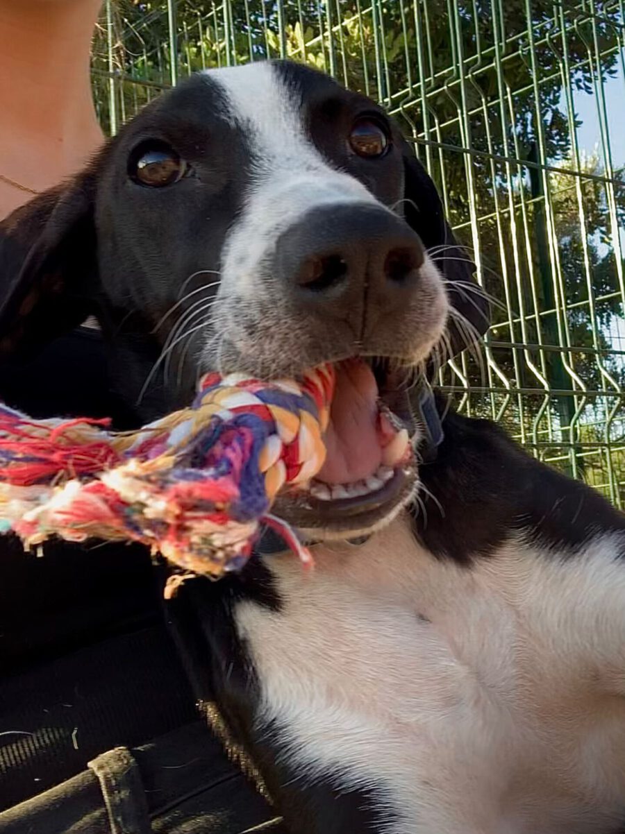 Der kleine Ozzy findet die Menschen besonders toll und spielt am liebsten den ganzen Tag. Bei seiner Liebe zu den Menschen haben unsere Helfer*innen jedoch immer ein Auge drauf, dass diese nicht in Eifersucht gegenüber den anderen Hunden umschwingt und auch beim Fressen hat Ozzy aufgrund dessen noch Probleme – sind andere Hunde in seiner Nähe kann es schon mal dazu kommen, dass er sein Essen verteidigen möchte. Außerdem schlingt er sein Futter zu schnell runter, weshalb unsere Helfer*innen begonnen haben, ein wenig mit Ihm Impulskontrolle zu trainieren. Da er jedoch so verrückt nach seinem Futter ist, lässt er sich natürlich auch wunderbar damit bestechen und trainieren. Der kleine lebensfrohe und energiegeladene Ozzy hat es jedenfalls auch faustdick hinter den Ohren!