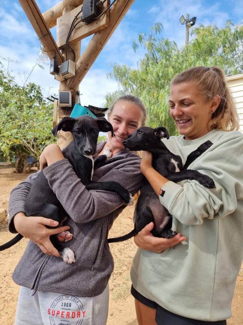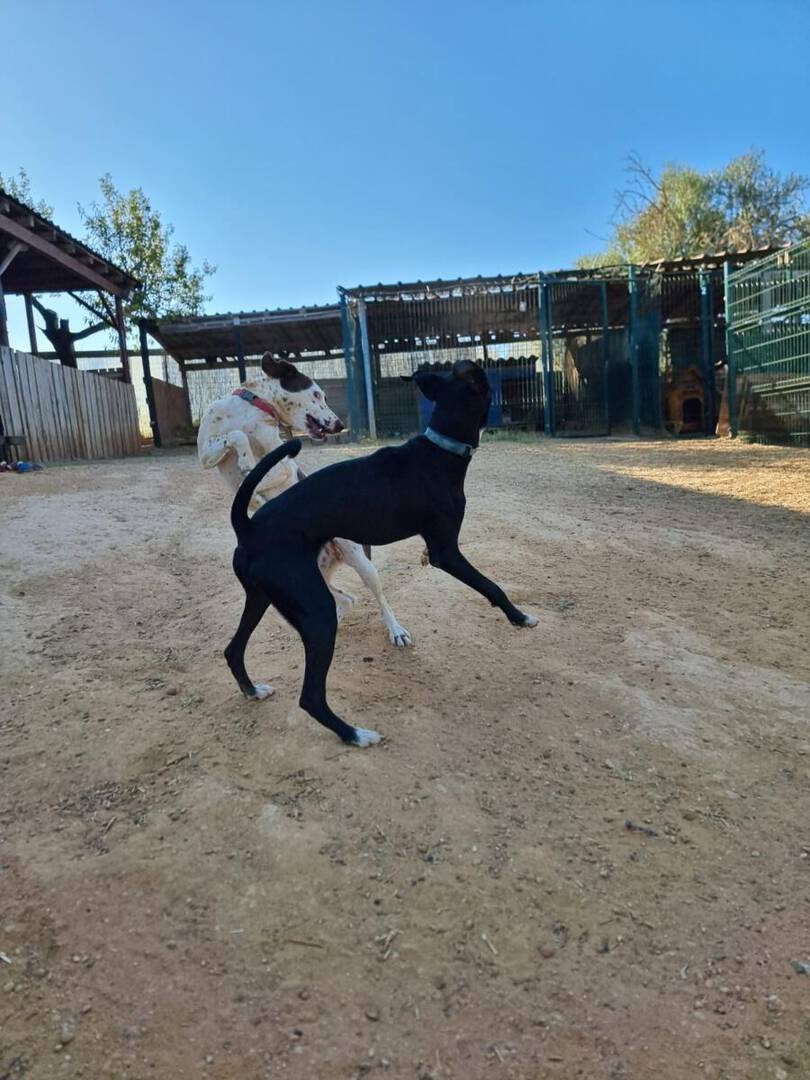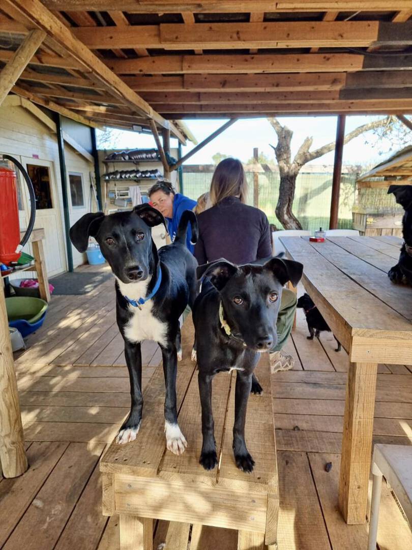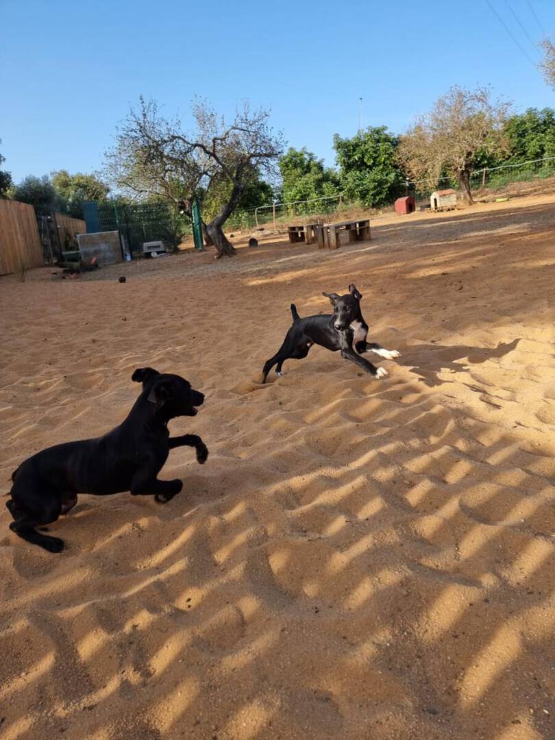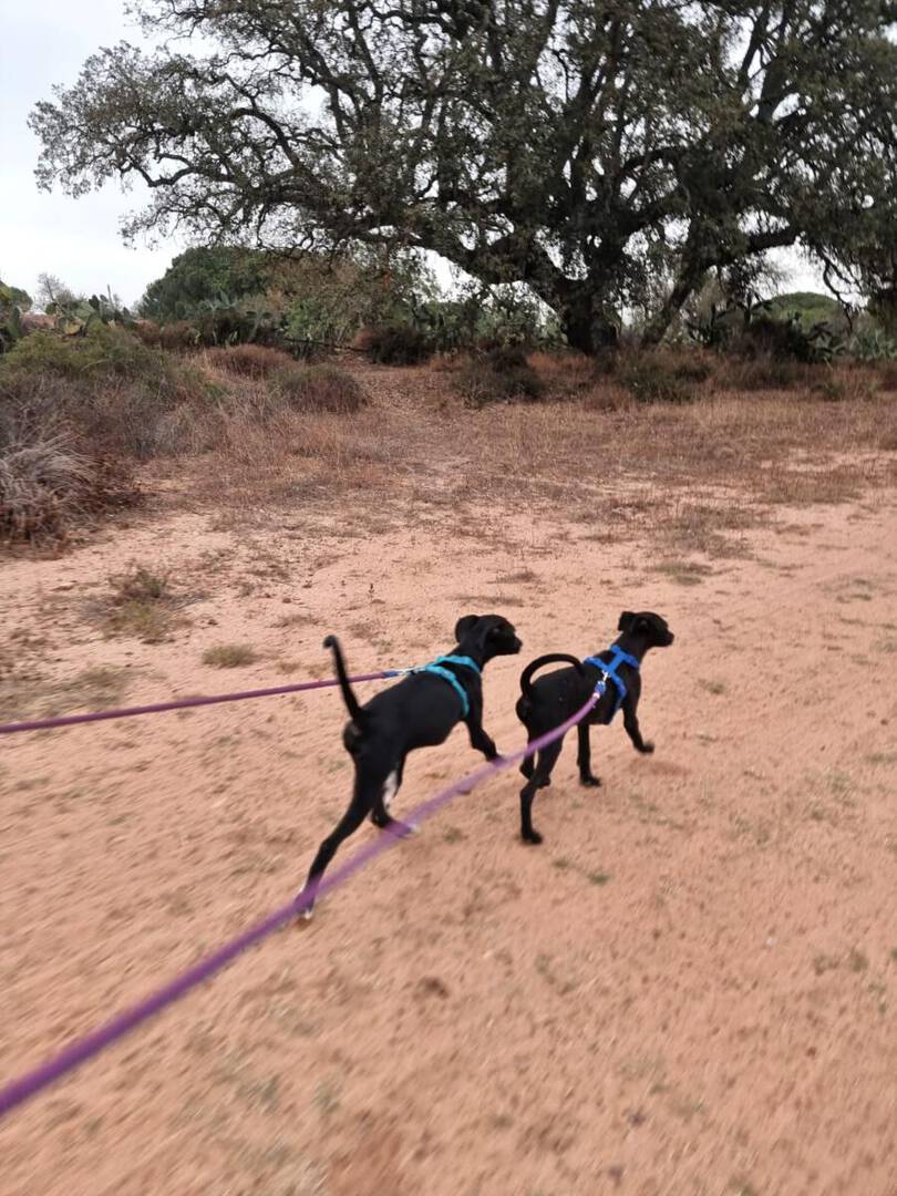 Pepe und Pino sind ganz fröhliche Welpen. Pepe ist der mutigere von den beiden Geschwistern. Er lässt sich mittlerweile gern streicheln, zeigt aber in manchen Situationen noch etwas Unsicherheit Menschen gegenüber. Daran arbeiten wir aktuell mit ihm. Er läuft auch schon prima an der Leine oder frei. Da klappt der Rückruf auch schon sehr gut. Auch vorbeifahrende Autos oder fremde Hunde waren auf den Spaziergängen bisher kein Problem. Nur beim Fressen versteht Pepe keinen Spaß, das verteidigt er gegenüber seinen Mitbewohnern. Menschen gegenüber ist er da aber zurückhaltend.