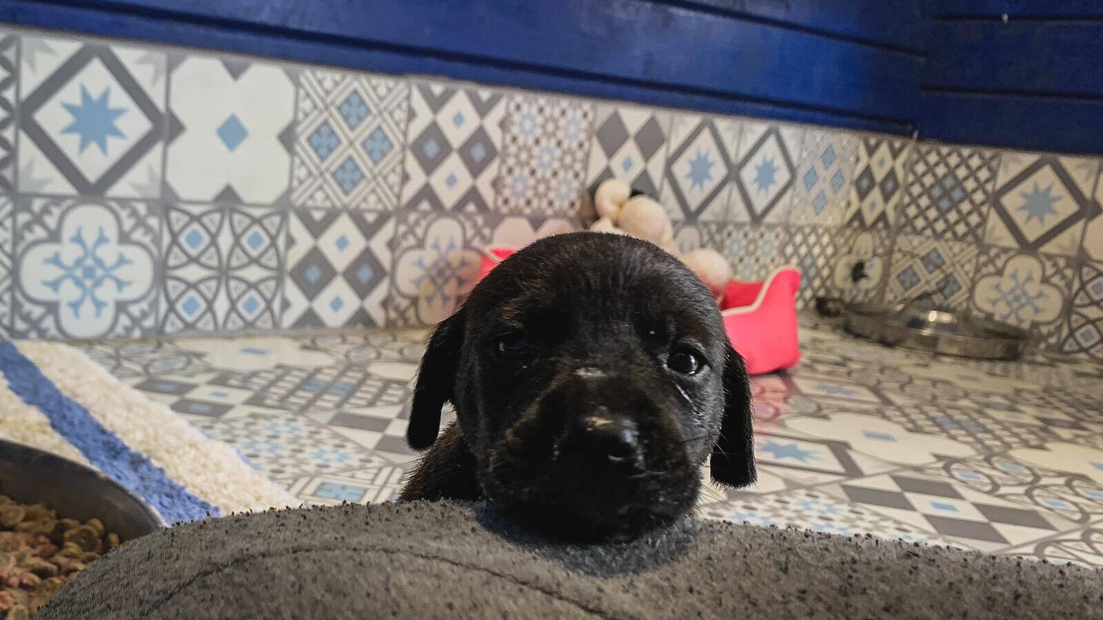 Die erste Nacht mussten die sieben Mäuse noch ohne ihre Mama bei uns verbringen, da es zunächst so aussah, als müsste Estrela operiert werden. Zum Glück ging es der hübschen Mama jedoch besser als gedacht, sodass sie nicht operiert werden musste und die Familie bereits am nächsten Tag wieder vereint werden konnte. Die kleinen Mäuse waren ungefähr einen Monat alt als sie zu uns kamen. Eine der Kleinen ist Pepsi. Sie kann jetzt erstmal in Ruhe mit ihrer Familie ankommen und ganz viel kuscheln. Ende Januar wäre Pepsi mit allen erforderlichen Impfungen ausreisebereit.