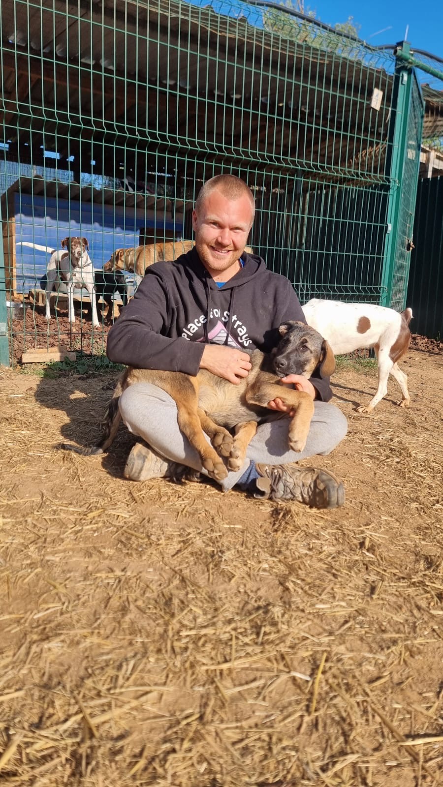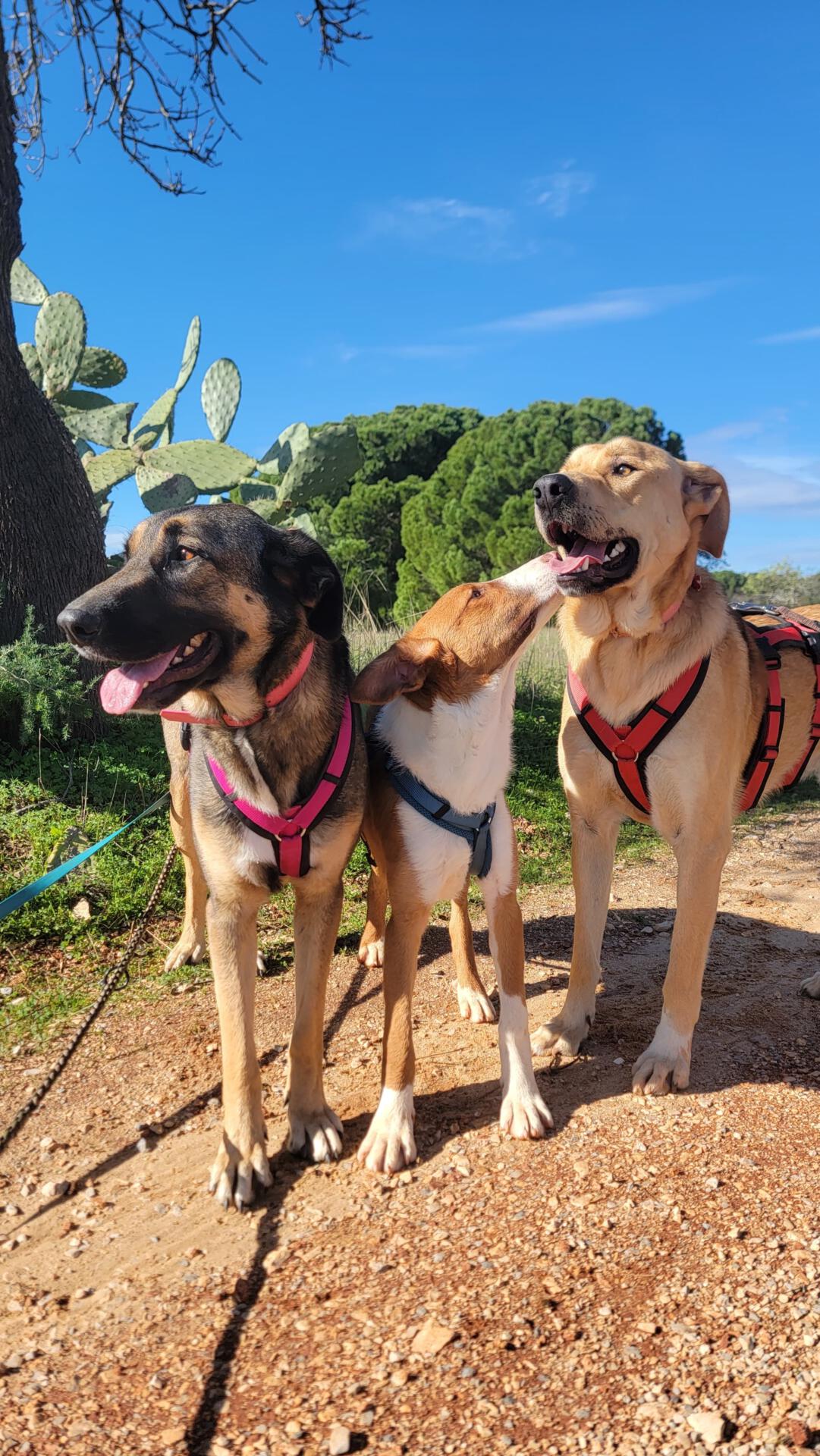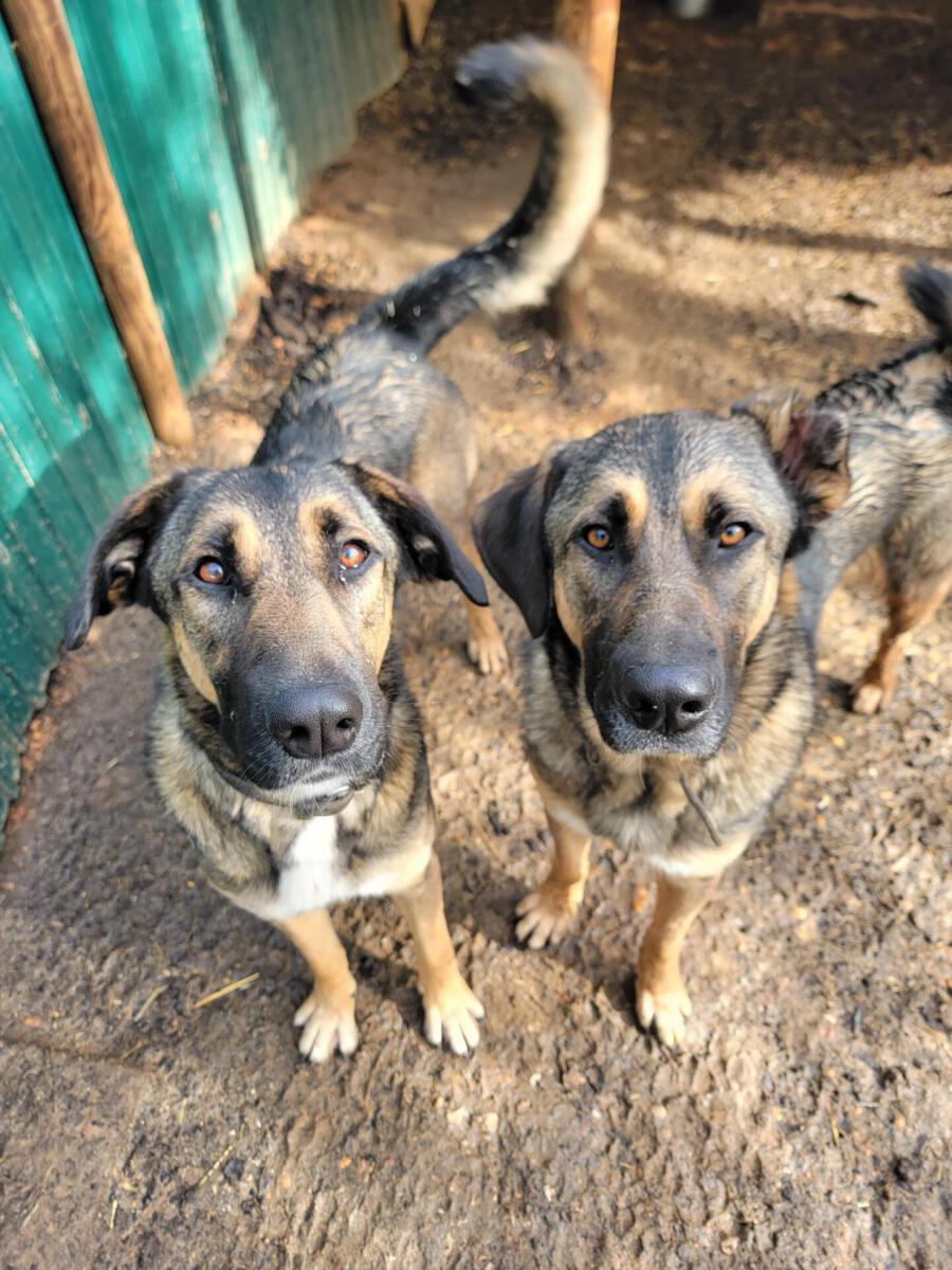 Mit all unseren anderen Hunden verstehen sie sich ebenfalls sehr gut und sind absolut unkompliziert. Sie suchen die Nähe ihrer Shelter-Kumpels und uns Menschen und freuen sich über jede Aufmerksamkeit. Abgesehen davon haben sie eine große Schwäche für Essen und es kann ihnen nicht schnell genug gehen, dass sie ihr Essen bekommen.