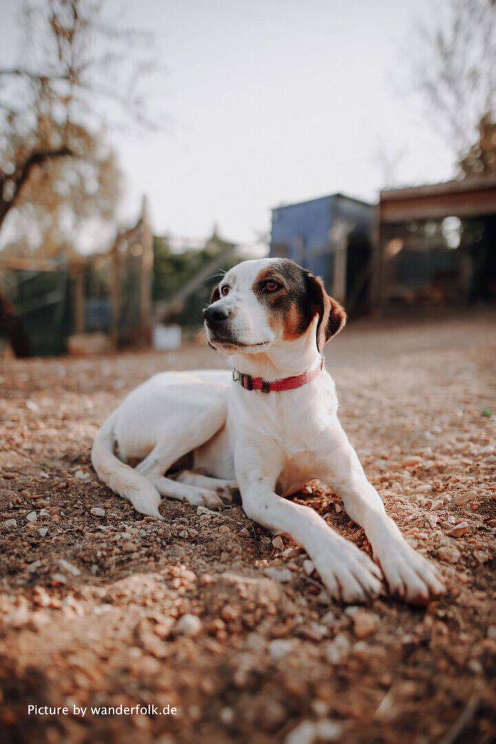 Toffee war zwar ihre beste Freundin, vielleicht weil sie genauso eine lustige und verspielte Hündin ist, aber Poppy liebt alle Hunde! Nach Toffees Abreise ist nun Nikita ihr größer Schatz und sie folgt ihr überall hin. Auch mit den Welpen spielt sie gerne. In dieser Hinsicht ist sie wirklich vorbildlich sozialisiert. Insgesamt wirkt Poppy, seit sie bei uns ist, immer sehr glücklich. Man trifft sie meistens Schwanz wedelnd an. Ein besonderes Highlight ist für sie immer wieder ein gemeinsamer Strandspaziergang mit Elenas Rudel und noch ein paar anderen Hunden aus dem PLACE for STRAYS. Dort konnte man sie sogar von der Leine lassen und sie orientiert sich hervorragend am Rudel. Wenn Poppy frei über die Felder laufen kann, blüht sie richtig auf!