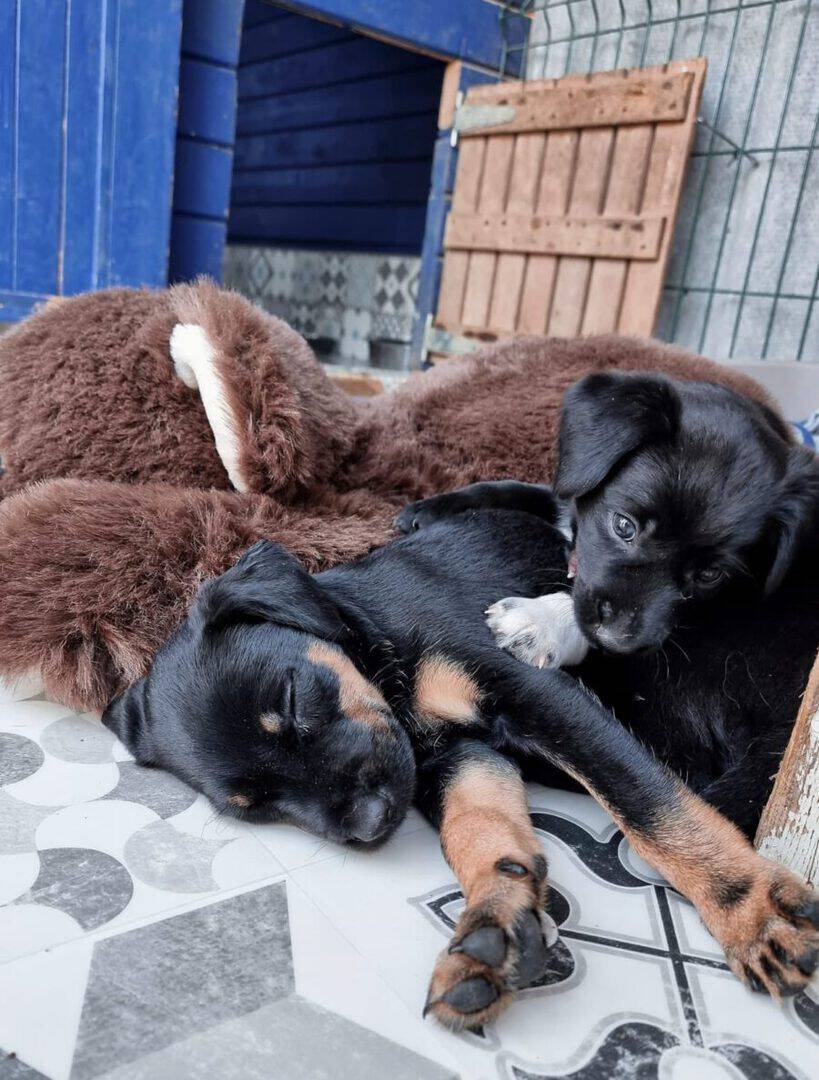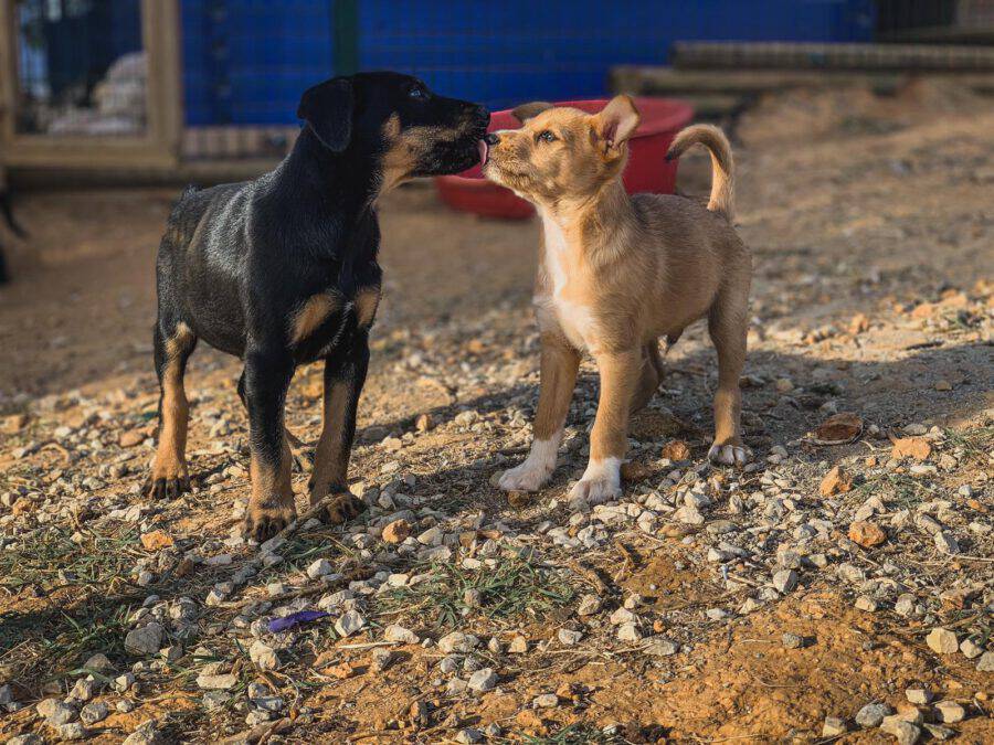 Wieder einmal konnten wir zwei verwaiste Welpen bei uns aufnehmen. Wir wurden auf die beiden durch eine befreundete Tierschützerin aufmerksam, die uns um Unterstützung gebeten hatte. Die beiden waren bereits eine Woche in einer Tierklinik, um vorsorglich gegen den verbreiteten Parvo-Virus behandelt zu werden. Nach der routinemäßigen Quarantäne in der Roten Kreuz-Station zogen sie zu Ginnys Welpen, wo sie liebevoll aufgenommen wurden und sich hervorragend mit den anderen kleinen Fellnasen verstehen. Nun lernen sie kontinuierlich auch die erwachsenen Hunde unseres Rudels kennen.