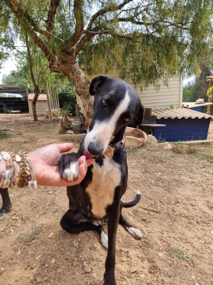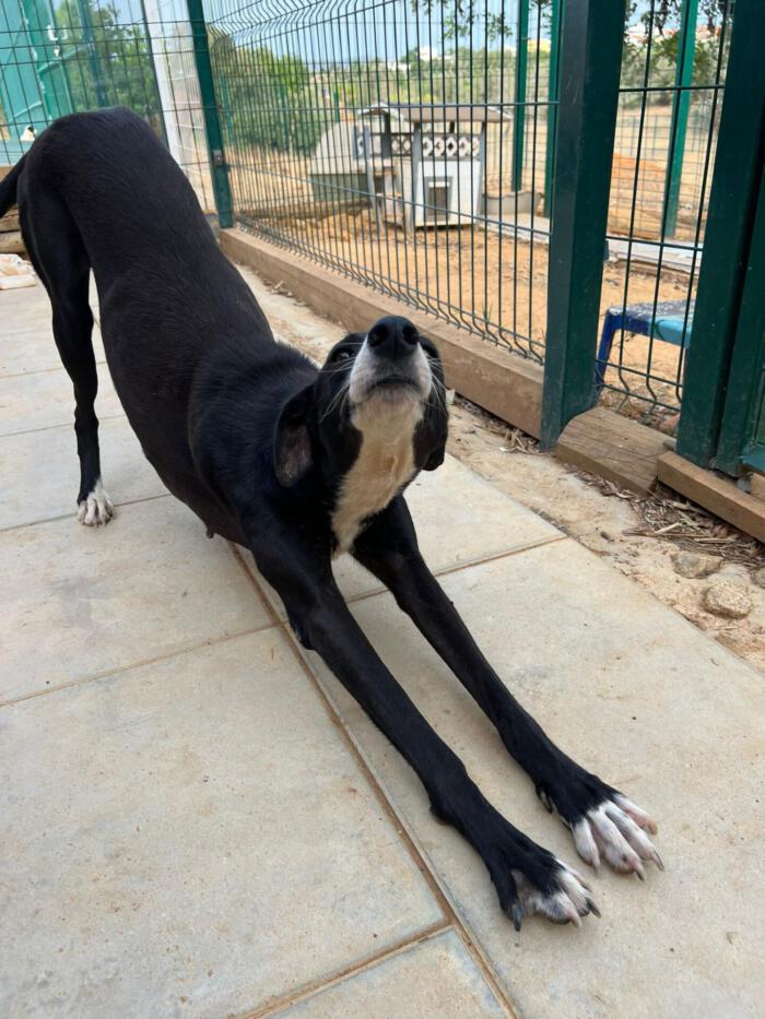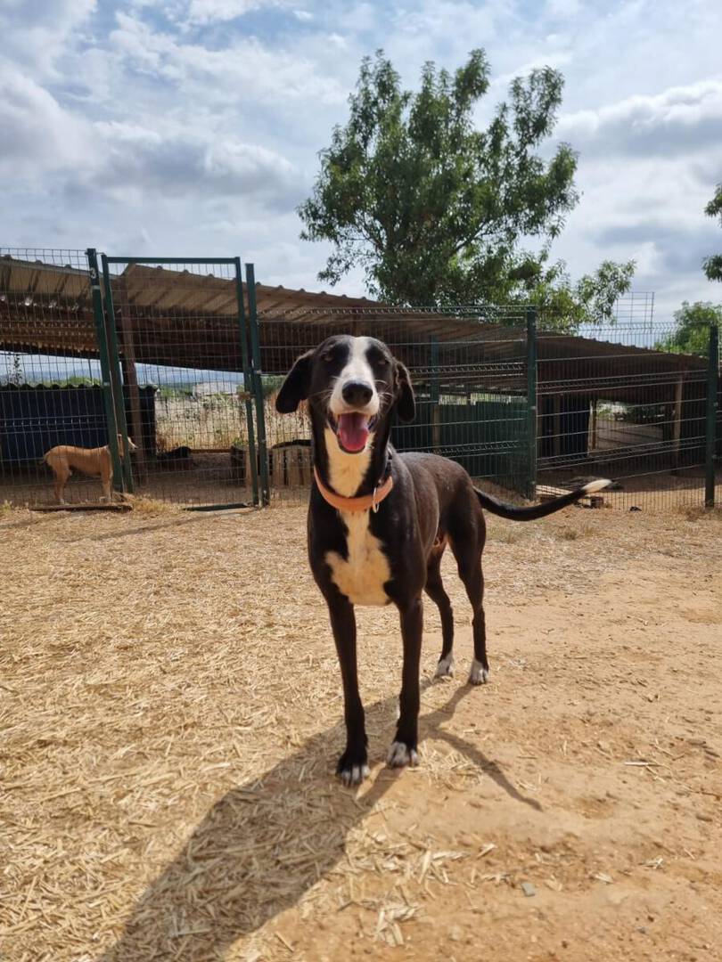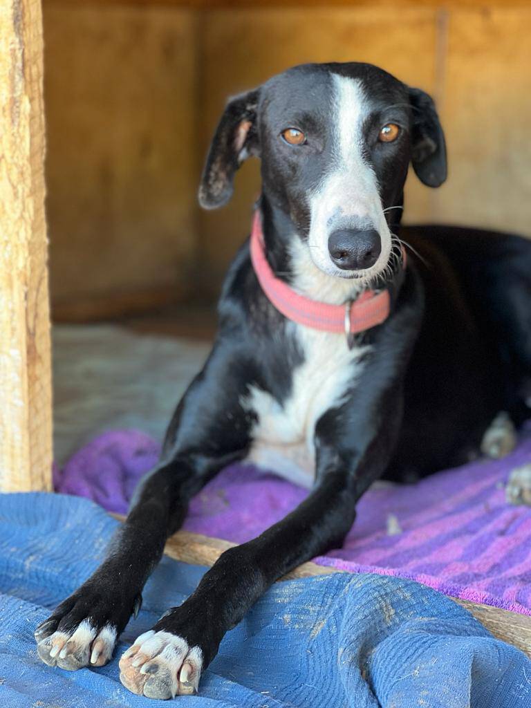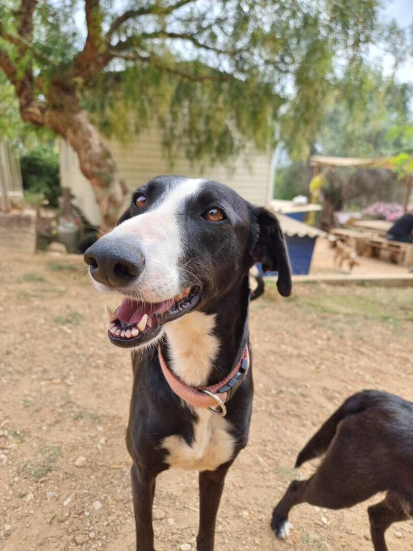 Queen ist einfach eine zuckersüße Maus. Sie hat ein sehr freundliches und liebes Wesen. Bei neuen Menschen braucht sie ein bisschen Zeit um aufzutauen. Manchmal geht es sehr schnell, manchmal ist sie noch eher zurückhaltend. Nachdem sie eine Weile beobachtet hat, dauert es aber nicht lange, bis sie sich anfassen und streicheln lässt. Generell ist sie sehr sozial mit anderen Hunden und versteht sich mit allen. Sie ist inzwischen viel fröhlicher geworden, springt wie ein Schaukelpferd über das Gelände von Place for Strays und liebt lange Spaziergänge. Queen hört schon sehr gut, sie läuft ganz toll an der Leine, Elena kann sie aber auch ohne Leine auf Spaziergänge mitnehmen. Man sieht ihr an, dass sie gerne durch die Gegend flitzt, das genießt sie in vollen Zügen und kann da richtig hochdrehen. Sie bleibt aber immer in der Nähe. Generell ist sie bei neuen, ungewohnten Situationen noch unsicher bis ängstlich, wirkt dann aufgeregt und gestresst, lässt die Situation aber zu. Autofahren ist ihr zum Beispiel noch nicht Geheuer. Auch beispielsweise beim Tierarzt ist sie zwar gestresst, lässt aber alles mit sich machen, obwohl ihr die Situation nicht geheuer ist. Sie blüht immer mehr auf und wird auch gegenüber ganz neuen Menschen immer aufgeschlossener.