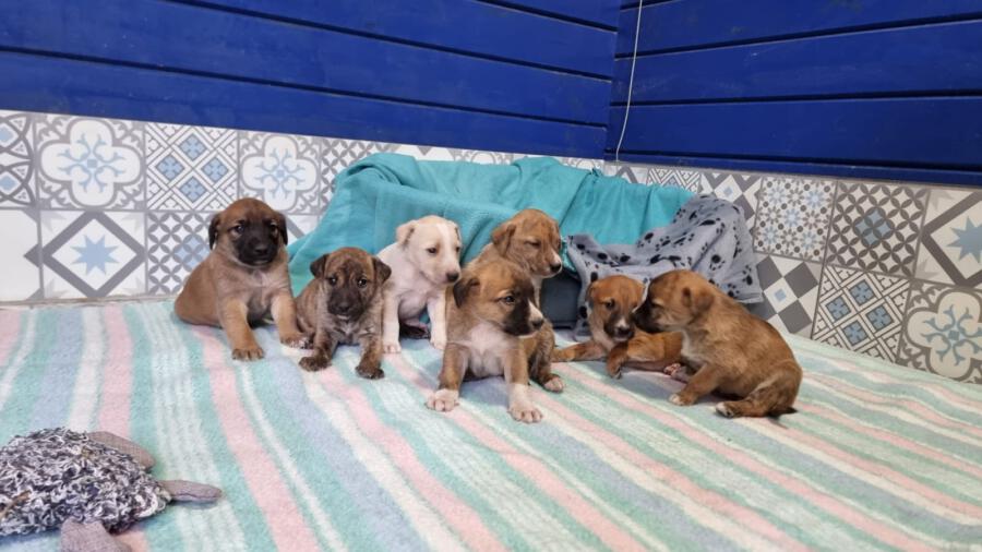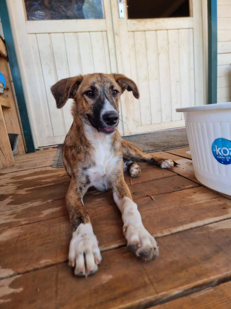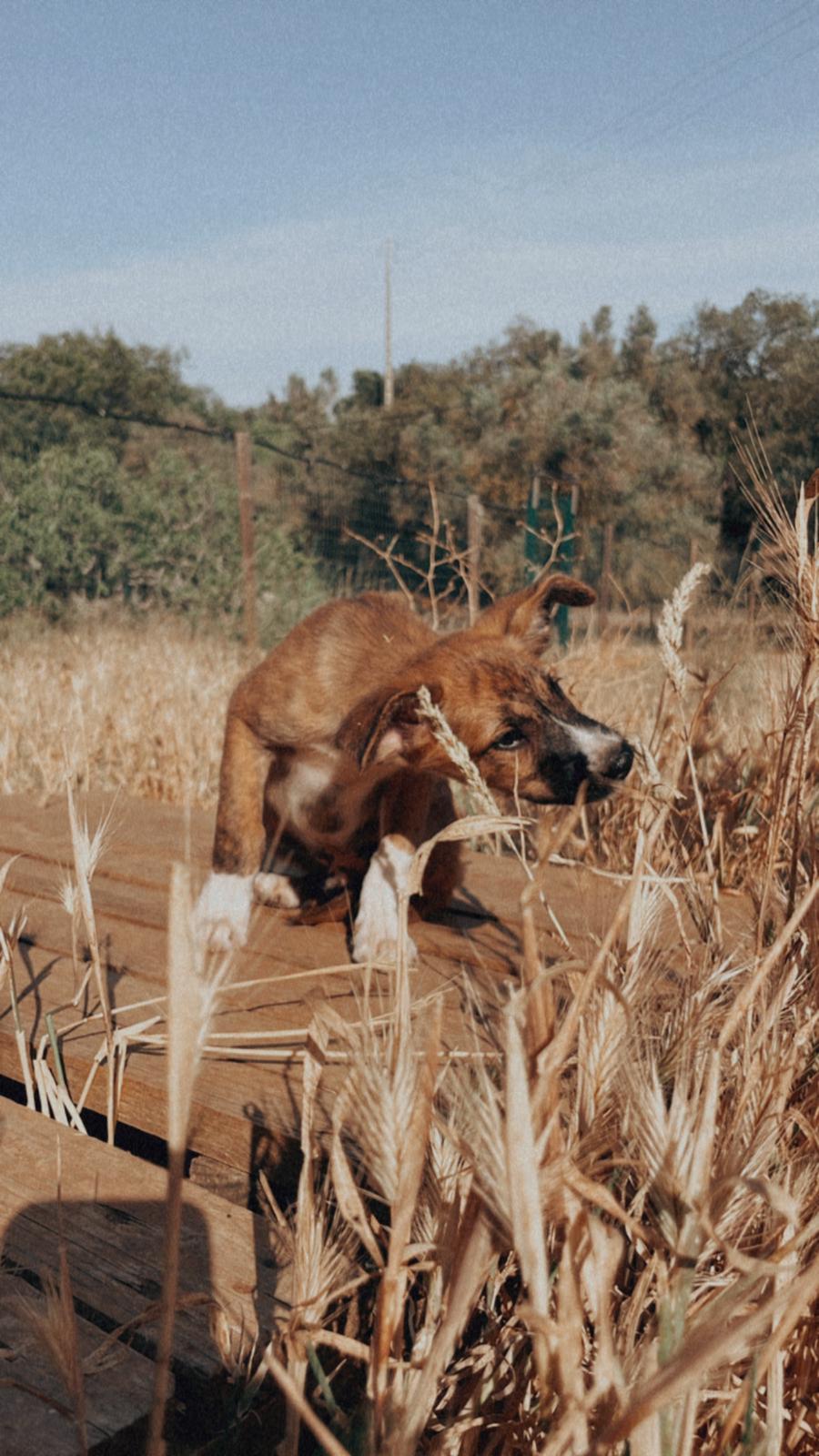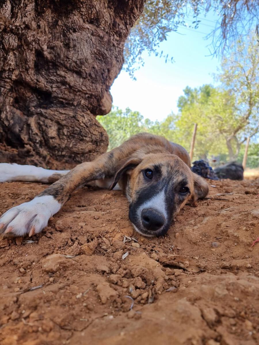 In der Nähe einer Orangenplantage haben Anwohner die Hundemama Tokyo mit ihren 7 Welpen entdeckt, die sich dort verkrochen hatten. Einer dieser Welpen war Rio. Durch ihren Hilfeaufruf sind wir auf die kleine Familie aufmerksam geworden, und unsere Helfer haben sich auf den Weg gemacht, die Truppe einzusammeln. Da Tokyo noch sehr ängstlich und scheu war, machte sie es unseren Helfern nicht so einfach sich einfangen zu lassen. Mit ganz viel Geduld ist sie jedoch nach einigen Stunden in die aufgestellte Hundefalle hereingegangen und so konnten wir glücklicherweise direkt die gesamte Hundefamilie in das PLACE for STRAYS bringen. Nun kann die kleine Familie sich erst einmal erholen und sich in unserer roten Kreuz Station einleben.