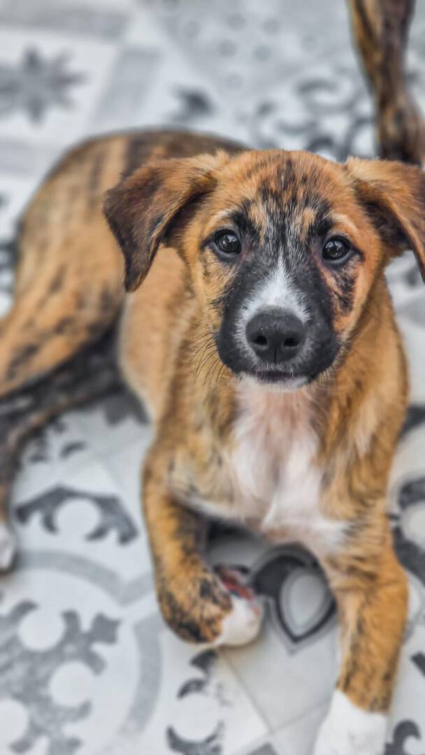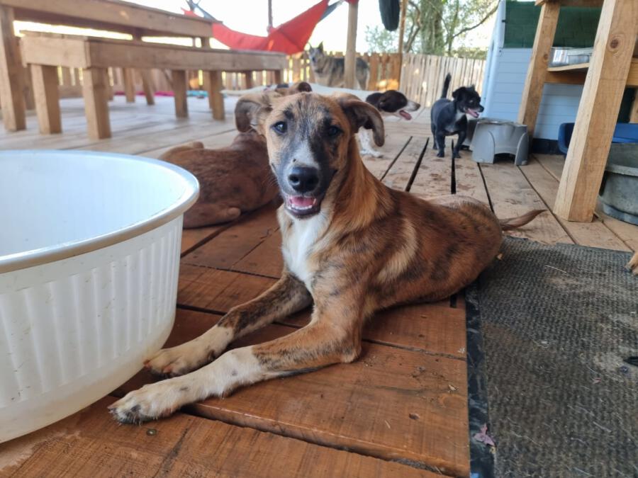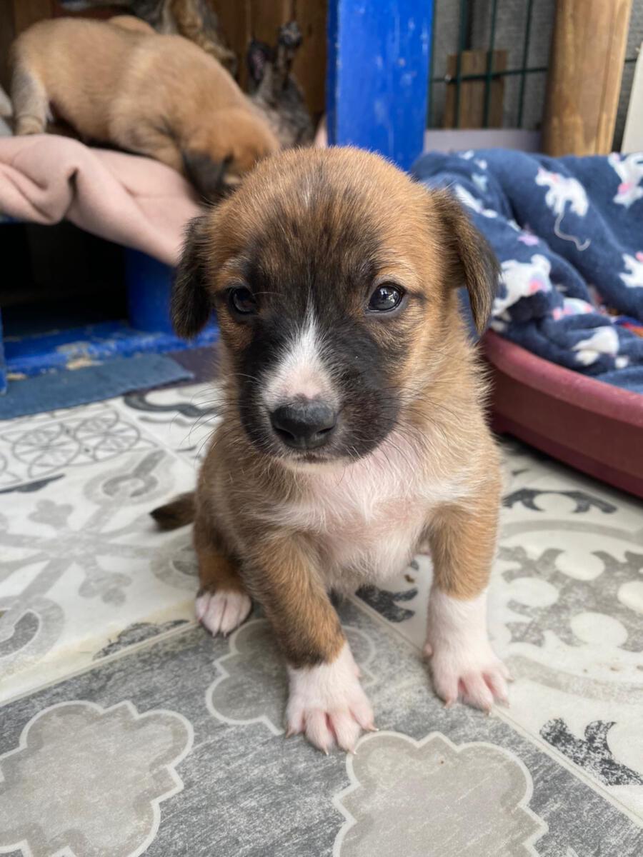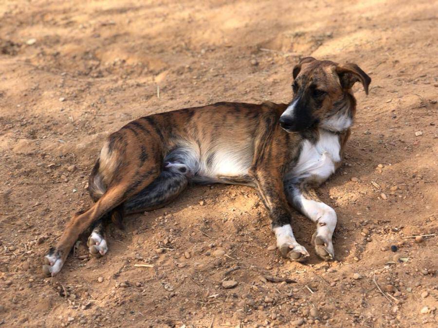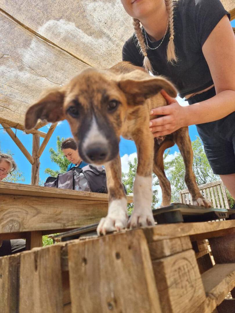 In der Nähe einer Orangenplantage haben Anwohner die Hundemama Tokyo mit ihren 7 Welpen entdeckt, die sich dort verkrochen hatten. Einer dieser Welpen war Rio. Durch ihren Hilfeaufruf sind wir auf die kleine Familie aufmerksam geworden, und unsere Helfer haben sich auf den Weg gemacht, die Truppe einzusammeln. Da Tokyo noch sehr ängstlich und scheu war, machte sie es unseren Helfern nicht so einfach sich einfangen zu lassen. Mit ganz viel Geduld ist sie jedoch nach einigen Stunden in die aufgestellte Hundefalle hereingegangen und so konnten wir glücklicherweise direkt die gesamte Hundefamilie in das PLACE for STRAYS bringen. Nun kann die kleine Familie sich erst einmal erholen und sich in unserer roten Kreuz Station einleben.