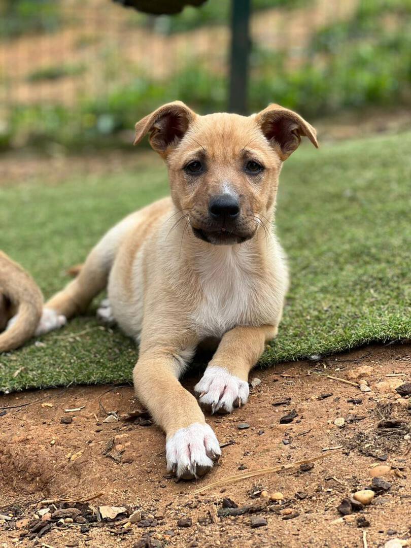 Gerade noch rechtzeitig konnte Grace von der Straße eingefangen werden, bevor sie vier Tage nach ihrem Einzug in den PLACE for STRAYS 9 wunderschöne Welpen zur Welt brachte, 4 Mädels und 5 Buben. Graces kleine Welpen sind bereits putzmunter und erkunden schon fleißig unsere Welpenstube, in die sie bereits umziehen durften. Eine der Welpen ist Sandy.