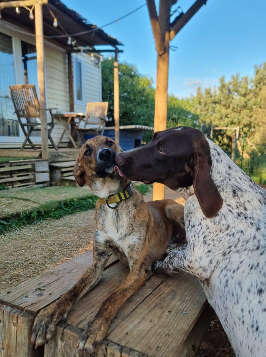 Skipper lebt aktuell noch in der Schweiz auf seiner Pflegestelle. Er läuft bereits gut an der Leine, was dem Alter entsprechend noch gefestigt werden muss. Trotz wachsendem Jagdtrieb ist er noch sehr gut ansprechbar und abrufbar. Auch hier muss natürlich weiter dran gearbeitet werden. Er ist für seine Rasse und Alter ein eher ruhiger Charakter. Kommt im Haus gut zur Ruhe, selbst bei Besuch oder zu Besuch an einem fremden Ort. Auch draußen ist er weder überdreht noch nervös. In neuen Situationen ist er eher vorsichtig und teilweise etwas unsicher. Orientiert sich aber sehr gut an seiner Bezugsperson. Skipper hat eine sehr enge Bindung zu seiner Bezugsperson. Dadurch orientiert er sich sehr stark an seinem Menschen. In der Hundetagesstätte vor Ort kommt er mit den anderen Hunden soweit gut zurecht, trägt aber in der Gruppe einen Maulkorb da er sich mit 1-2 anderen Rüden (mit einem davon lebt er zusammen) nicht versteht und sonst auf dumme Ideen kommt. Dennoch provoziert er seinen Mitbewohner noch immer recht gerne und soll daher nur in ein zu Hause als Einzelhund oder mit einer souveränen Hündin vermittelt werden. Mit der Hündin seiner Pflegestelle versteht er sich gut und akzeptiert auch ihre Zurechtweisungen.