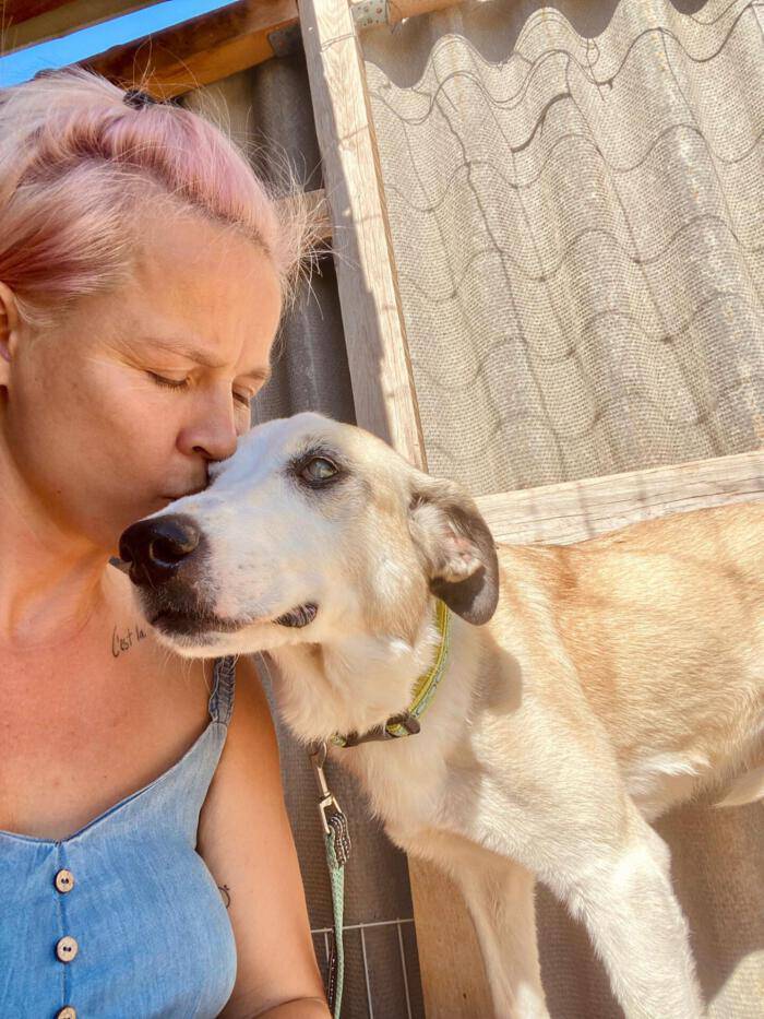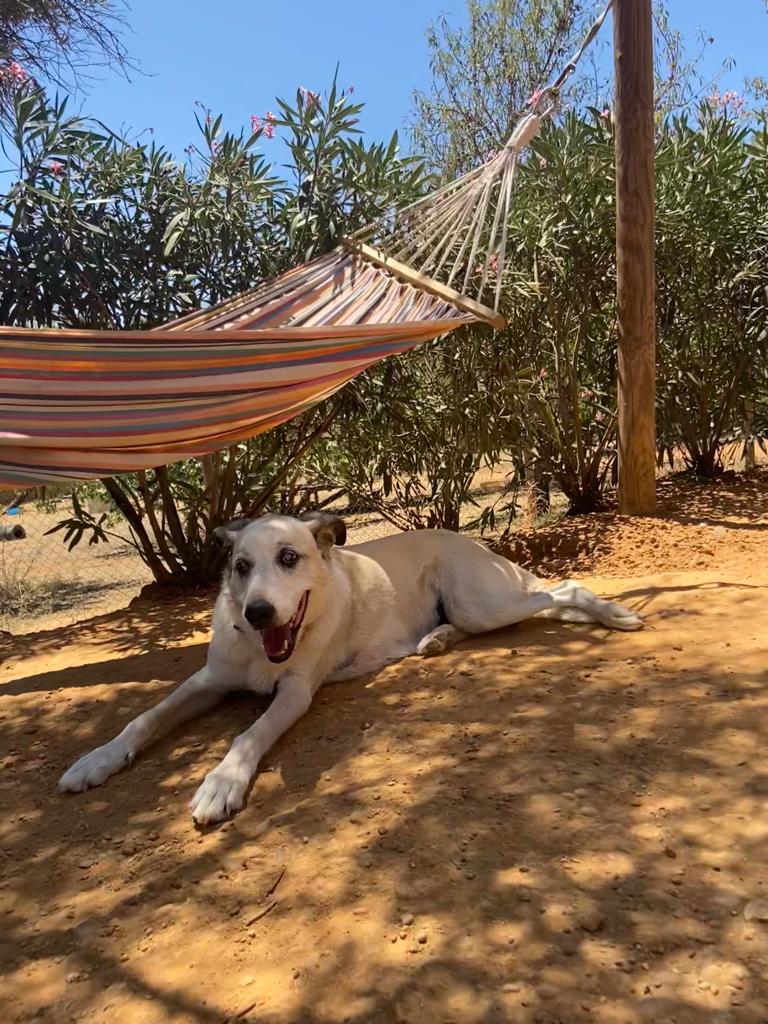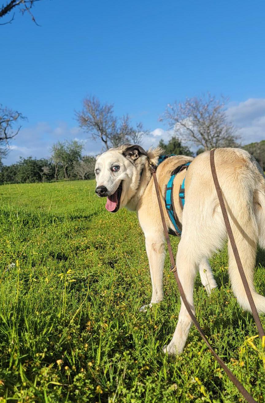 Eines Morgens hatte Sky eine Verletzung am Hals, die sofort tierärztlich versorgt werden musste. Seitdem ist sie kurzfristig auf einer Pflegestelle eingezogen, damit sie zur Ruhe kommt und in Ruhe heilen kann. Auf der Pflegestelle leben ebenfalls andere Hunde und Sky verhält sich absolut vorbildlich. Sie macht viele Fortschritte in einem großen Tempo, was im Shelter in dem Umfang bisher nicht möglich war. Auch gemeinsame Spaziergänge mit den anderen Hunden der Pflegestelle macht sie super.