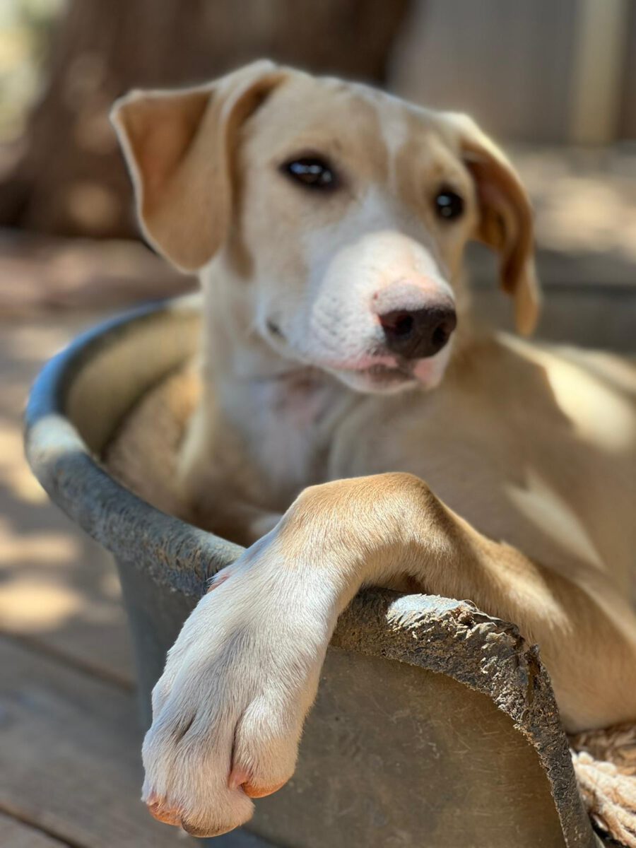 Unsere Tassie ist eine wahre Schmusekönigin. Obwohl sie nun wirklich kein kleiner Welpe mehr ist, spielt sie noch sehr gerne Schoßhündchen. Unsere Tassie liebt alle Menschen und Hunde bei uns im Shelter. Sie ist ein sehr fröhlicher Welpe und es ist immer süß zu sehen wie sie sich auch gut alleine beschäftigen kann . Mit ihrer wunderschönen Cremefarbe ist auch sie ein echter Hingucker!