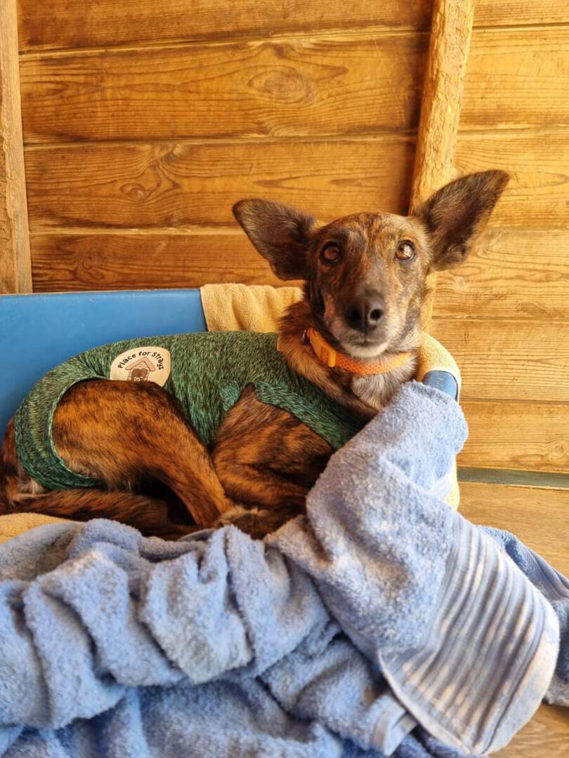 Tokyo befindet sich nun schon über zwei Jahre im PLACE for STRAYS. Alle von Tokyos Welpen haben bereits ihr für-immer Zuhause gefunden und auch die kleine Hundedame ist seit ihrem Einzug Stück für Stück aufgetaut und hat eine tolle Entwicklung hingelegt. Tokyo kommt gut mit den anderen Hunden zurecht und teilt sich mit Milo eine Box. Das anfängliche Misstrauen gegenüber Menschen hat sie mittlerweile fast komplett abgelegt und ist eine richtige Kuschelmaus. Vor Allem in den letzten Monaten hat sie sich wirklich toll entwickelt. Auch bei neuen Leuten taut sie deutlich schneller auf, begrüßt sie freundlich und freut sich schwanzwedelnd über Streicheleinheiten und Aufmerksamkeit. Beim Spazierengehen ist Tokyo gerne dabei und verhält sich da vorbildlich, ob alleine oder mit anderen Hunden. Die einst so schüchterne Hündin geht mittlerweile auch ins Auto sodass man mit ihr Strandausflüge machen kann. Geschirr anziehen und anleinen wiederum findet die kleine Dame immer noch nicht so toll. Sobald sie jedoch gesichert ist, gibt es keine Probleme mehr. Ein besonderes Highlight für Tokyo ist der Schnüffelteppich, aus dem sie sich mit Freude ihr Frühstück holen darf. Wir hoffen das unsere zauberhafte Tokyo bald ihr für-immer Zuhause findet.