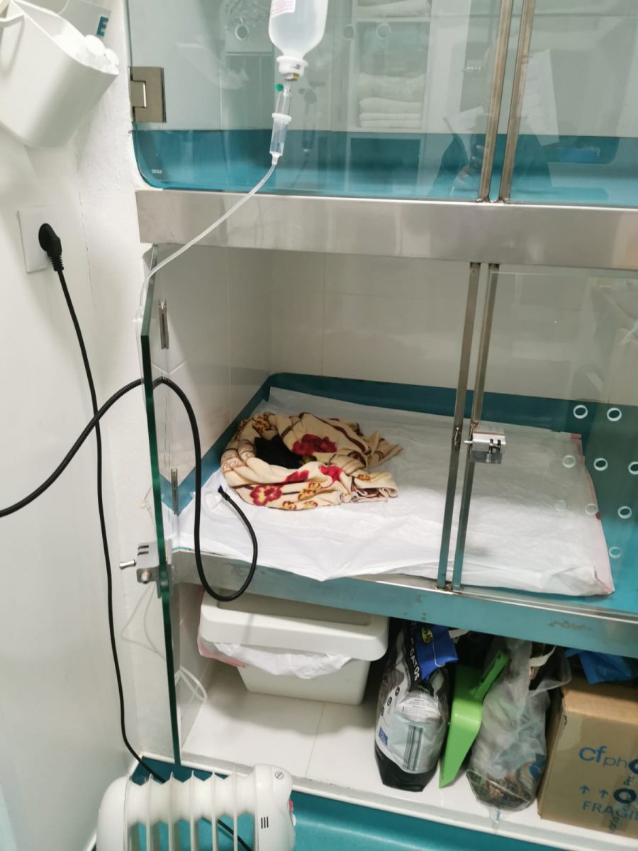 Velvets Zustand verbesserte sich trotz Intensivpflege leider nicht. Als sie am nächsten Tag erneut gründlich untersucht wurde, stellte man fest, dass ihr Bauch voller Luft war, die wegen einer für diese Erkrankung typische Blockade nicht aus dem Körper abgeleitet werden konnte. Die einzige Möglichkeit ihr noch zu helfen: eine Notoperation. Leider verstarb unsere kleine Velvet jedoch schon beim Setzen der Narkose. Ihr kleiner Körper war einfach zu schwach.