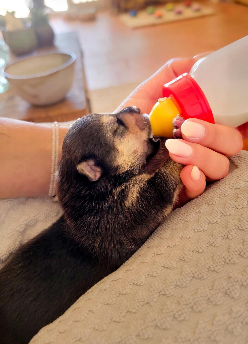 Dank der schnellen Hilfe von engagierten Helfer:innen und der liebevollen Pflege durch Elena, die sich nun rund um die Uhr mit Fläschchen und ganz viel Liebe um sie kümmert, geht es den dreien inzwischen gut. Schritt für Schritt entwickeln sie sich zu starken, gesunden Hundebabys, die mit jeder Minute ein Stück mehr an Lebensfreude und Energie gewinnen.