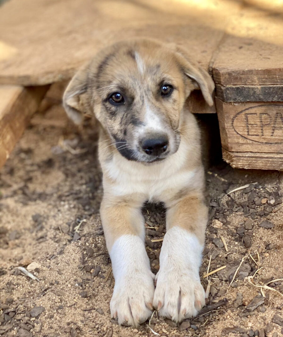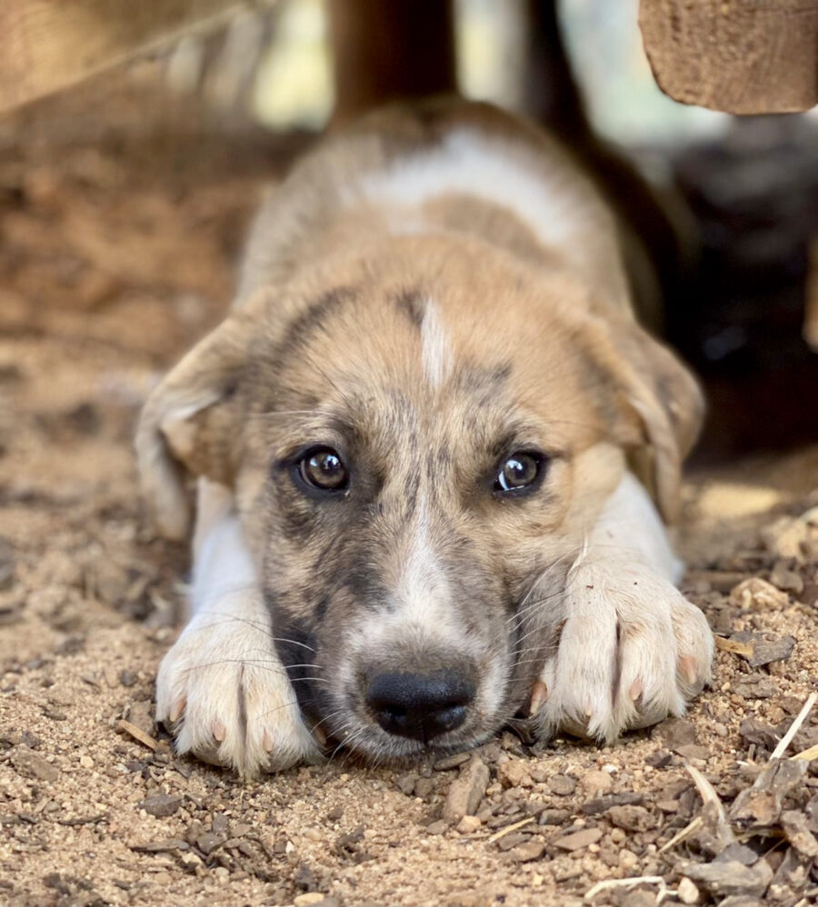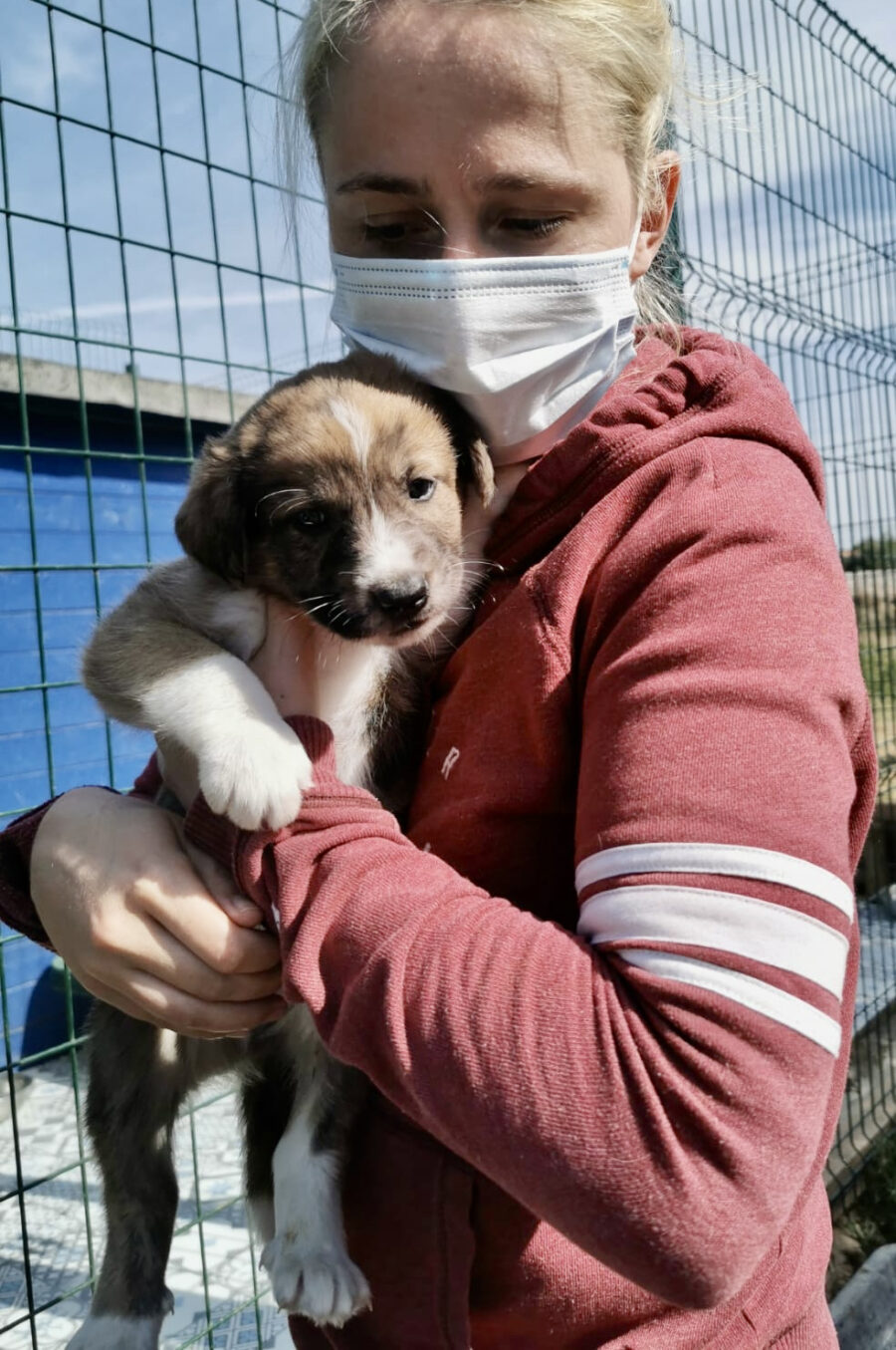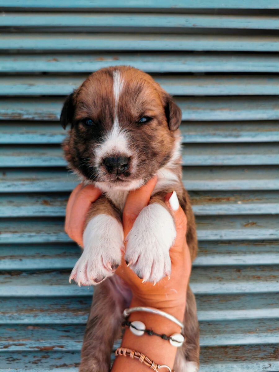 Die Hündin Gala lebte zusammen mit ihrer Mutter Amora und ihrer Schwester Shenzi auf der Straße bzw. in der Nähe von Häusern. Liebe Anwohner fütterten sie, konnten sie aber nicht im Haus aufnehmen. Sie suchten lange nach Hilfe und fanden keine. Durch einen glücklichen Zufall kamen sie mit unserer Helferin Claudia in Kontakt und so nahmen wir die drei Hündinnen bei uns auf. Leider sind wir zu spät gekommen, denn Gala und ihre Schwester waren trächtig. Am 26.02.2021 brachte Gala 10 gesunde Welpen zur Welt. Einer davon war Yoda.